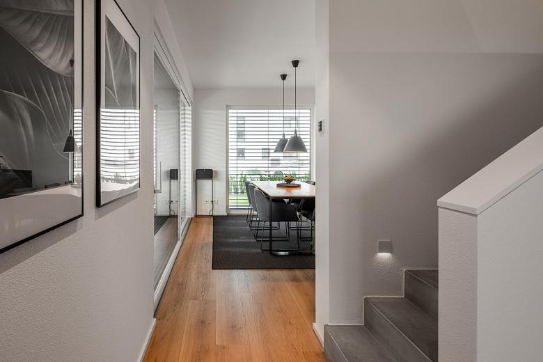 Gleichzeitig gehen Lebensbereiche wie Arbeit und Freizeit ebenso fließend ineinander über wie die Lebensphasen: vom funktionalen Single-Wohntraum über das gemütliche Familiennest bis zum barrierefreien Alterswohnsitz. Wer seinen Blick in die Zukunft schweifen lässt, kann zukünftige Lebenssituationen antizipieren und in der Planung so berücksichtigen, dass das Zuhause mit wenig Aufwand den aktuellen Anforderungen wie etwa Familienzuwachs, pandemiebedingtem oder auch freiwilligem Home-Office oder Pflegebedürftigkeit angepasst werden kann. Und das, ohne seine ursprüngliche Ästhetik einzubüssen.