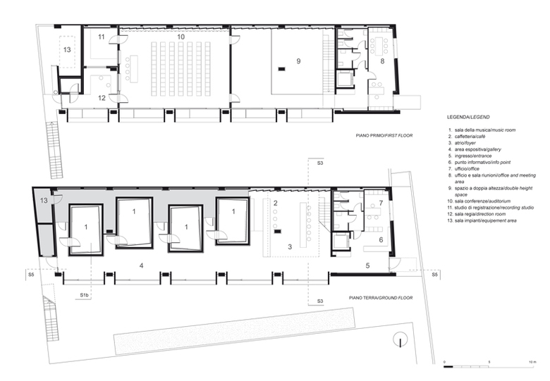 The new destination incorporates different functions related to several groups and associations and is meant to be used in different ways. The music hall includes areas for public gatherings and refreshment, rooms for music practice and teaching, exhibition, performances and conferences, as well as a recording studio.
