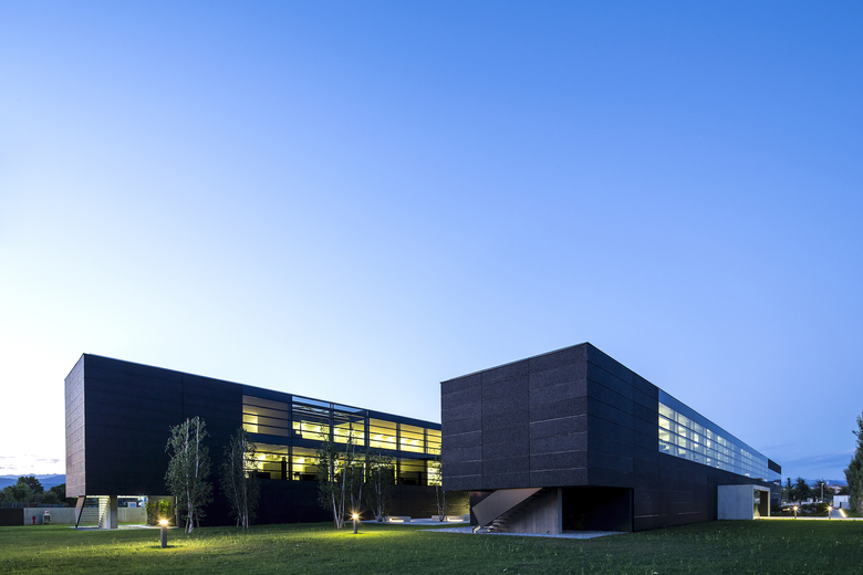 The project for the new offices of Faber Industrie Spa is part of a comprehensive strategy aimed at developing and planning the whole area owned by the company, which includes the construction of a new plant, about to be completed, the reorganization of in-house logistics, access control, parking lot and roads, as well as the general site plan and landscape.