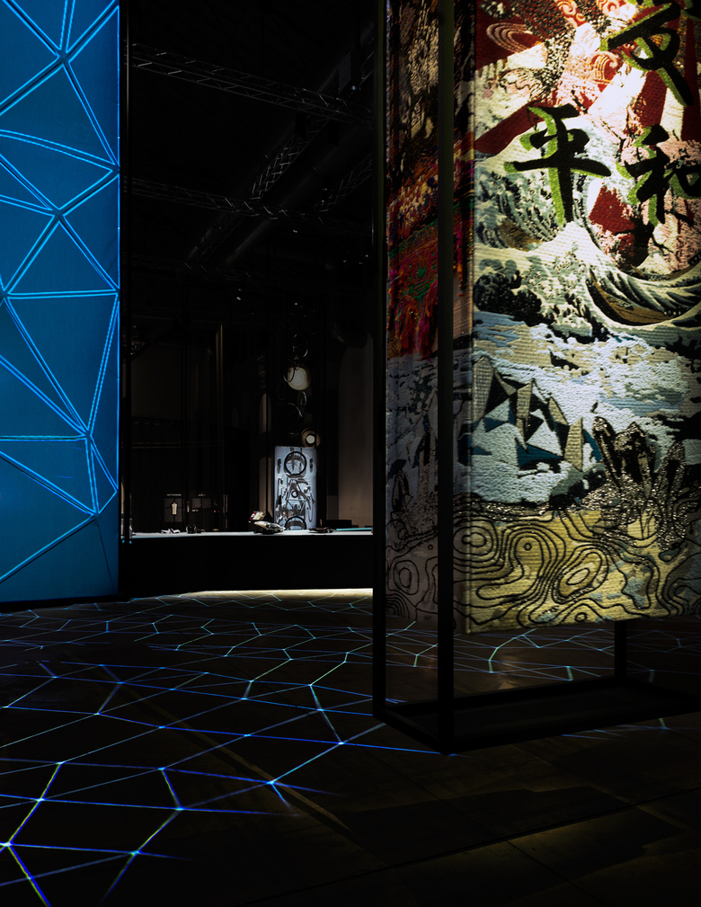 The design “reveals” the spatial value of the Cathedral and its expressive strength and, thanks to a spectacular theatricality, it fosters the dialogue between all the “actors” invited by the curator to represent their processes of creation.