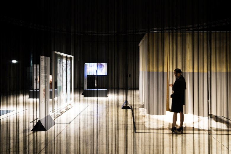 The contents of the different areas are defined by a regular sequence of black cubes of the same dimension but different height; sometimes they are integrated with glassed-showcases: a great laboratory whose order is found on the repetition of the black cases that guide the visitor during the entire exhibition.