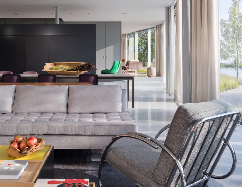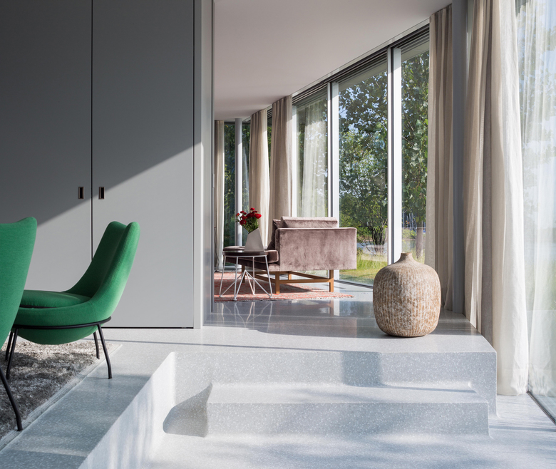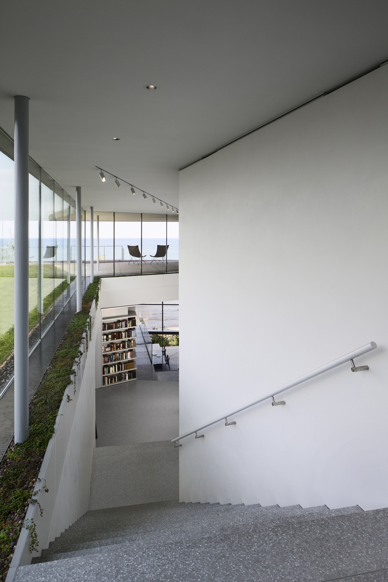 The house is about the transition from suburban streets to lakeside beach on this unusual site. There are overlapping journeys provided by the house, from working world to family life, from formal to informal, from public to private worlds.