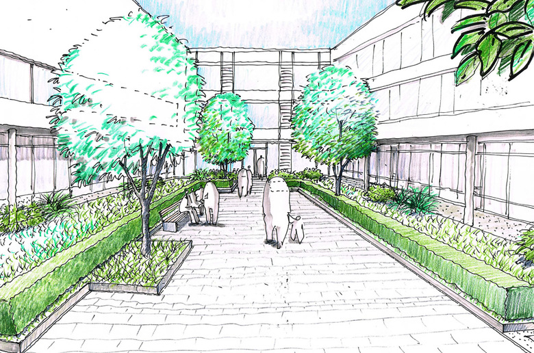 Außenanlagen, Atriumhöfe und extensive Dachbegrünung - Erweiterung Klinikum Konstanz