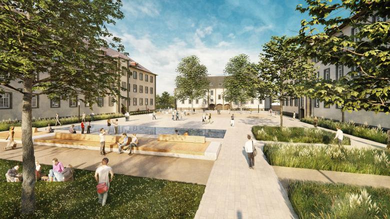 Die Konversionsfläche soll in die umliegenden Quartiere und in das Stadtgefüge integriert werden und durch attraktive Freiflächen einen Mehrwert für die Bewohner und Nutzer des Campus generieren. Der prägende Charakter des Ensembles aus