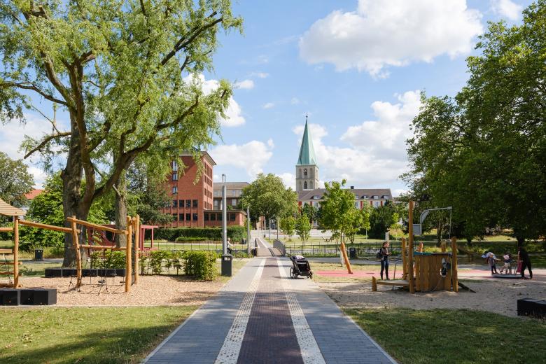 Der Nordringpark wird im Bereich des Nordenwalls über einen neuen Fußgängerüberweg sowie eine Bastion mit Treppen, Sitzstufen und einer barrierearmen Rampe erschlossen. Ein neuer Abenteuerspielplatz mit Wasserthema und „Kanalboot“ bietet auf der offenen Freifläche genügend Spielmöglichkeiten mit parkartigem Charakter. Im Bereich der historischen Lippeschleuse bildet eine zweite Bastion mit Treppen und Sitzstufen sowie einer weiteren barrierearmen Rampe den Übergang zur Adenauerallee und zum neuen Stadtquartier.