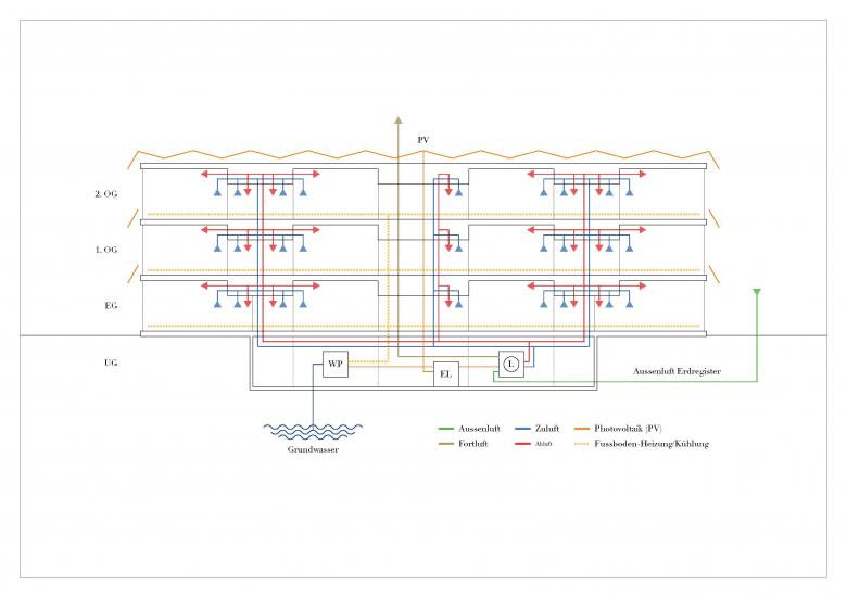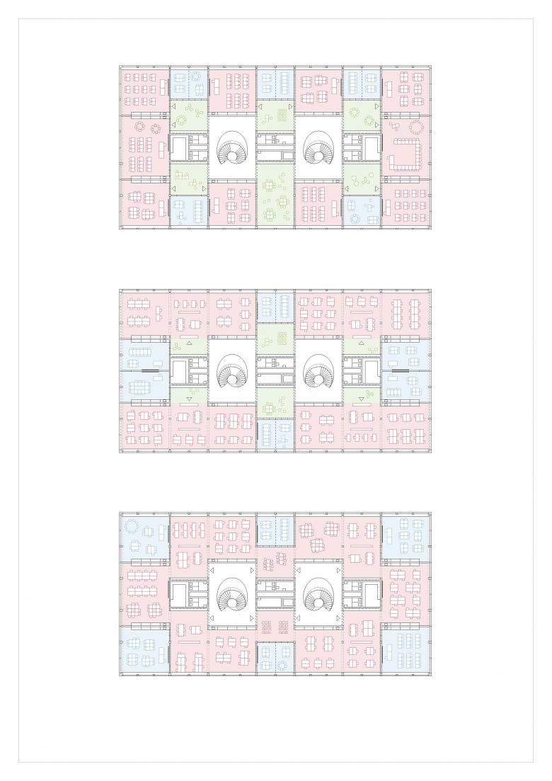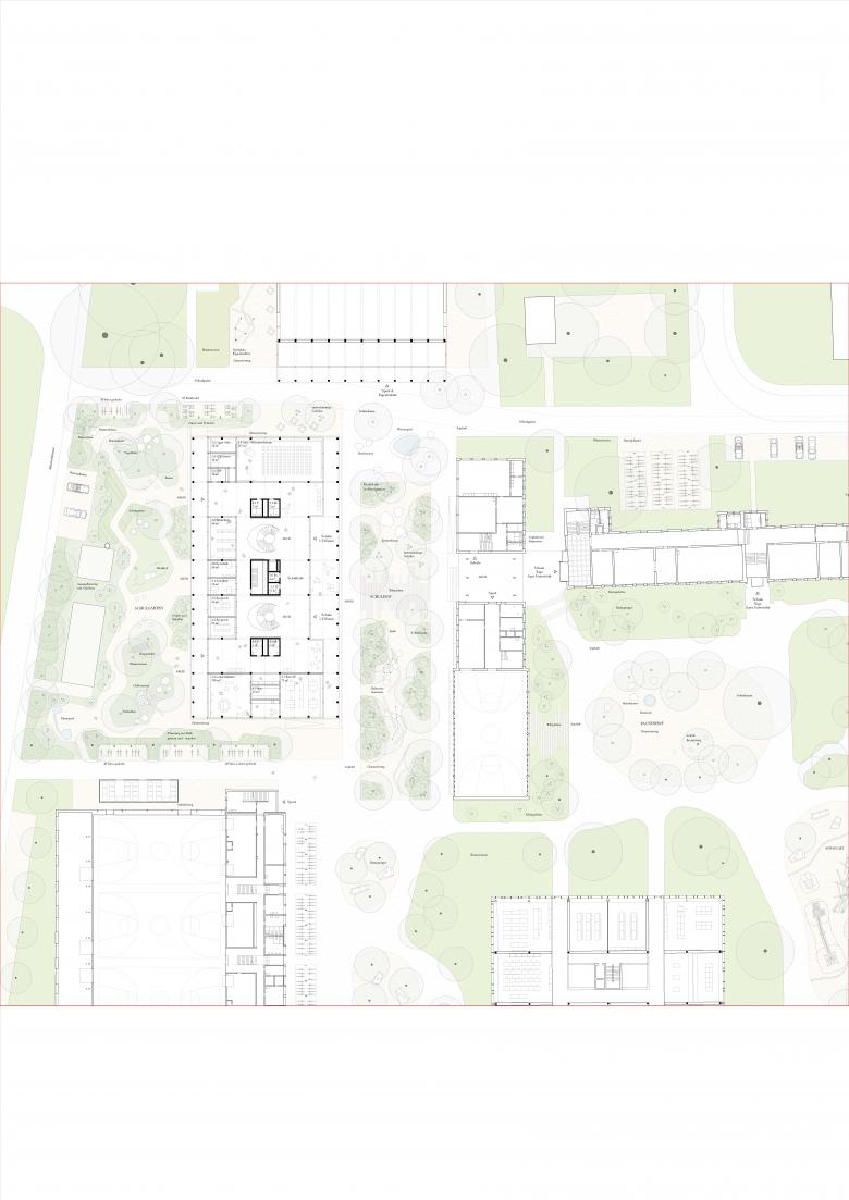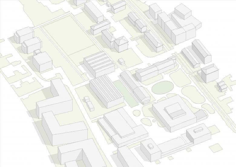 Das neue Gebäude bildet die solide städtebauliche Basis für eine flexible mittel- bis langfristige Erweiterungsstrategie des Schulstandortes Allmend in mehreren Etappen. Als Visavis zum bestehenden Turnhallentrakt mit dem prägenden gedeckten Durchgang in Ost-Westrichtung, setzt sich das Gebäude entlang der Nordsüdachse sanft an den Ort. Mit den offenen Lauben entlang den Längsseiten im Erdgeschoss verwebt sich das neue Schulhaus zu den für die Primarschulkinder wichtigen Aussenräumen. Nach Osten grenzt an die Zugangslaube der zentrale Schulhof und nach Westen verknüpft die privatere Gartenlaube das Haus mit dem Schulgarten. Die Verbin dungachse in Nord-Süd Richtung bleibt für die Öffentlichkeit bestehen, erscheint aber im Bereich des Schulhofes als halbprivater Ort für die Schulkinder. Die Lernräume im neuen Schulgebäude werden als flexible und wandelbare Raumgefässe entwickelt. Die Konzentration der Unterrichtsräume auf lediglich zwei Obergeschosse ermöglicht eine optimale alterspezifische „Nähe“ zu den Aussenräumen für die Kinder, sowie ein hohes Mass an möglichen Raumverknüpfungen und Variabilität der Grösse der pädagogischen Teams für den Unterricht. Die Basiseinheit bilden ein Cluster von zwei Klassen mit einem gemeinsamen möblierbaren Garderobenraum und zwei aneinandergrenzenden Gruppenräumen, welche für den Unterricht zusammen mit der Garderobe eine eigene offene Lernzone bilden kann. Die Unterrichtsräume bilden kommunikative „Räume als dritter Pädagoge“ für die Schulgemeinschaft. Die Wandelbarkeit der Räume ermöglicht altersgerechte Unterrichtsformen vom klassischen Frontalunterricht in der Kerngruppe, über individuelles Lernen mit der Integration des spezifischen Förderunterrichtes im Atelierbetrieb bis zum klassenübergreifenden und altersdurchmischten Arbeiten in der offenen Lernlandschaft (Open-Space). Das Tragstrukturskelett, die Vertikalerschliessung, die Gebäudehülle und die dienende Infrastruktur (Haustechnik, Nassbereiche) bilden den „Rahmen“ in welchem sich der Unterrichtsraum den stetig wandelnden Anforderungen an die Schule, ohne wesentliche bauliche Eingriffe, verändern lässt.