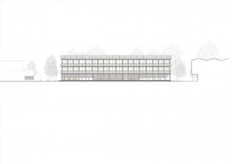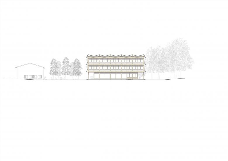 Das neue Schulhaus Allmend fasst die zusätzlich benötigten Unterrichtsräume für die Primarstufe Horw in einem kompakten dreigeschossigen wandelbaren Schultrakt in Holzbauweise zusammen. Die architektonische Gestalt des Schulbaus ist nebst den pädagogischen Anforderungen geprägt von den aktuellen Herausforderungen des Klimawandels & der Nachhaltigkeit. Das Ziel des ressourcenschonenden Bauens formt die architektonische Erscheinung massgebend mit und führt zu einer spezifischen architektonischen Gebäudefassung, welche für die Schülerinnen und Schüler ein charaktervoller Erfahrungsraum, bereichert um das Thema der Nachhaltigkeit, darstellt.