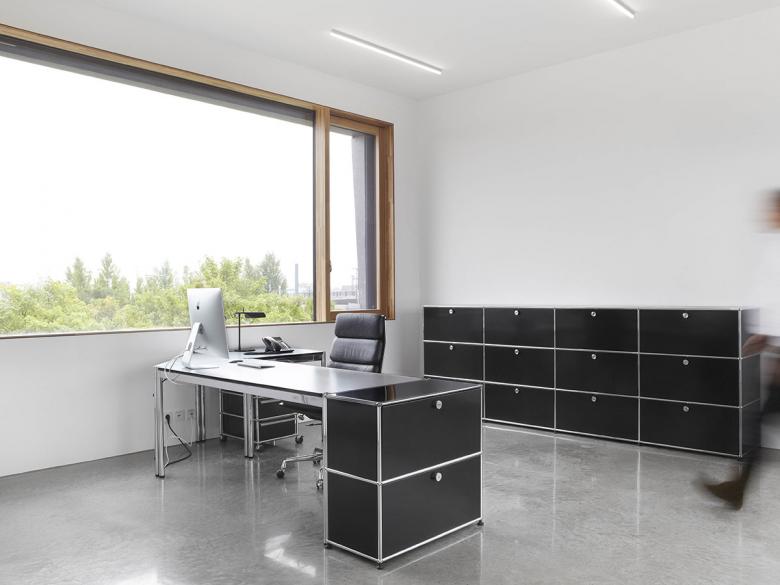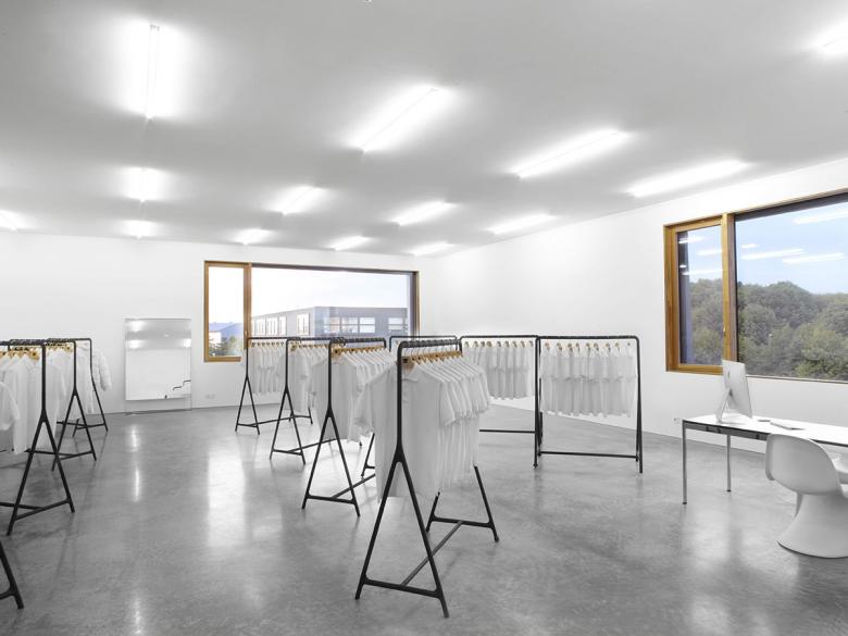 Ein Gewerbebau in München, der mit aussergewöhnlichen Büro- und Produktionsflächen aus dem Bereich Stickerei und Textildruck auf sich aufmerksam macht, ist mit LED Leuchten von Luxsystem ausgestattet worden. Der Baukörper nutzt dabei seine exponierte Lage auf einem Eckgrundstück für den besonderen Auftritt: kraftvoll, selbstbewusst und sehr eigenständig. Der dreigeschossige Quader wird durch ein Gebäuderaster gegliedert, übergroße Fensteröffnungen zeigen sein Innenleben. Die Sandwich-Fassadenmodule mit ihrer Schale aus poliertem, mattgrauem Beton wirken sauber zusammengefügt. Die „gefaltete“ Oberfläche erinnert dabei ungezwungen an etwas Textiles. Durch die großen Fensteröffnungen hat man einen sehr schönen Blick in das innere des Gebäudes. Der Bauherr, die Textilmacher GmbH aus München, entschied sich bei der Beleuchtung für die schlanken Luxsystem LED Lichtlinien der Leuchtenserie SL 20.3. Das Zusammenspiel von natürlichem Licht und Kunstlicht spielte darüber hinaus für das Architekturbüro Tillich aus München eine große Rolle und konnte mit der silbernen Luxsystem Leuchte sehr gut realisiert werden.