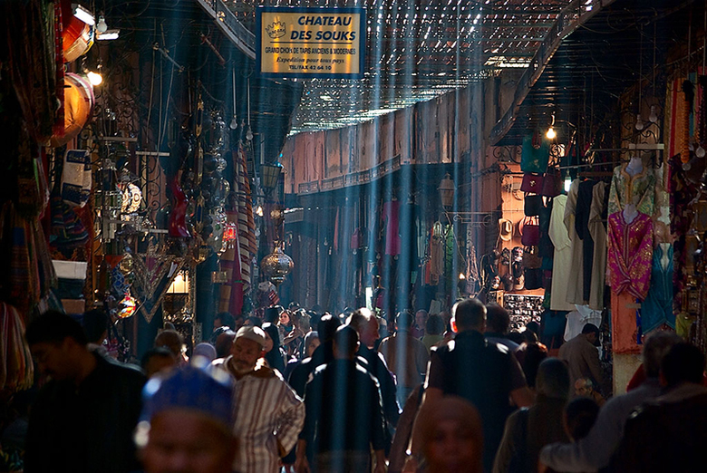 Der Suk ist das wirtschaftliche Zentrum der historischen, arabischen Stadt. Die engen Gassen sind weitgehend mit lichtdurchlässigen Holzgittern überdacht, um die Besucher vor starker Sonnenbestrahlung und Hitze zu schützen.