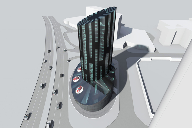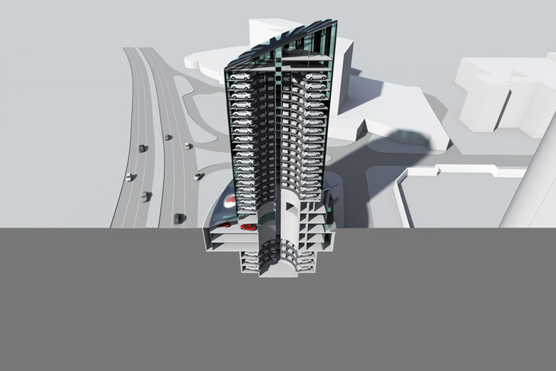 «Floyd» Vollautomatisiertes Parkhaus mit Mantelnutzung