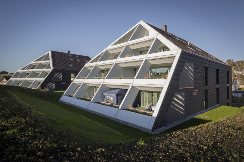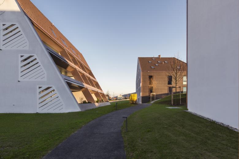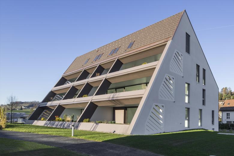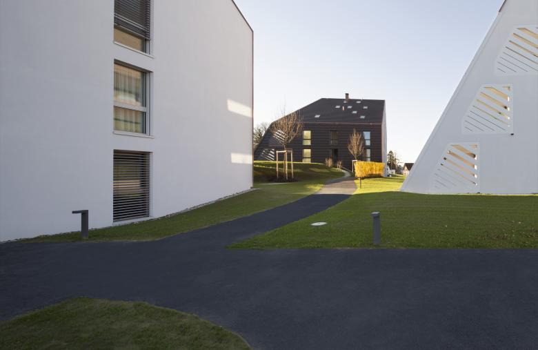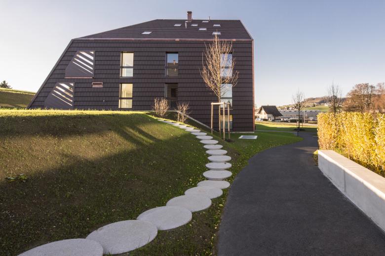 Bei der Konzeption der beiden Gebäudetypen A und B wurde grossen Wert auf die Flexibilität gelegt. Bezüglich der Materialisierung werden ortstypische Materialien wie verputztes Mauerwerk, dunkelbrauner Dachziegel und Spenglerarbeiten in Kupfer verwendet. Wünschenswert ist ein unregelmässiges Spiel von weiss verputzten Fassaden und Fassaden mit Ziegeleindeckung.