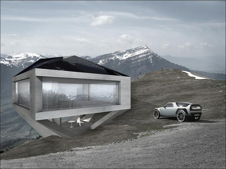 Das Konzepthaus ist weder auf eine bestimmte Topografie noch auf ein bestimmtes Klima ausgelegt. Der Footprint des Gebäudes wird minimiert auf eine quadratische Fläche von 25m2; dadurch kann das Haus in einer Ebene, an einem geneigten Hang, auf einem Felsvorsprung oder sogar im Wasser stehen. Der Raum unter dem Wohngeschoss wird sowohl als gedeckter Aussenraum, als auch als gedeckter Erschliessungsraum genutzt.