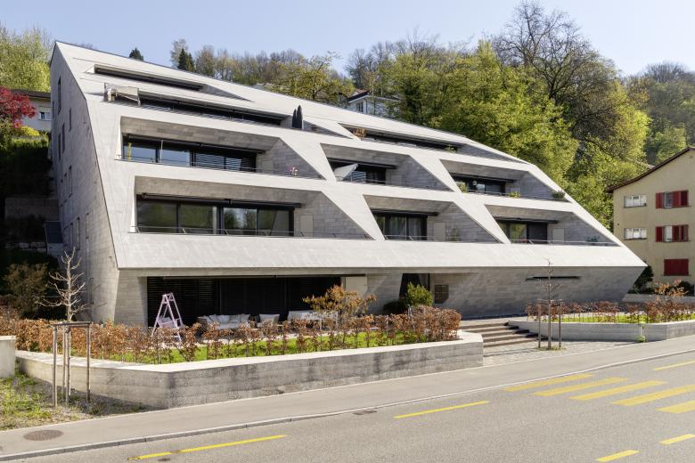 Der Baukörper wird so ausgebildet, dass die bestehende Felswand erhalten bleibt und zusammen mit den Fassaden des Neubaus einen Aussenraum definiert, welcher der Gemeinschaft dienen soll.