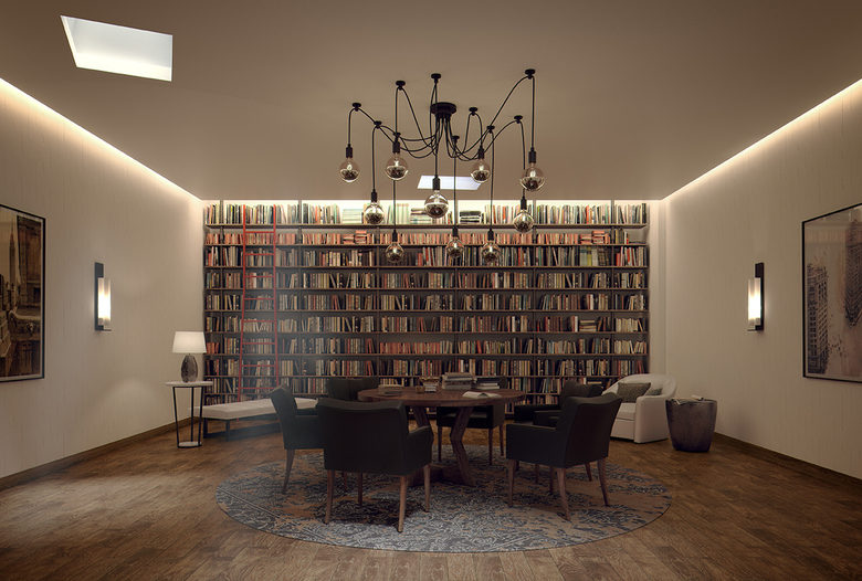 The building amenities are extensive. Indoor amenities include: gym with fitness studio, massage room and nutritionist office; golf room; spa; screening room; library; gaming room; pet grooming area; sports bar; business center; bike room; and party room. Outdoor amenities include: bocce pitch; shuffleboard court; ping-pong tables; grill and dining area with a fire pit; outdoor class & flexible space; party room; kitchen; and lounge.