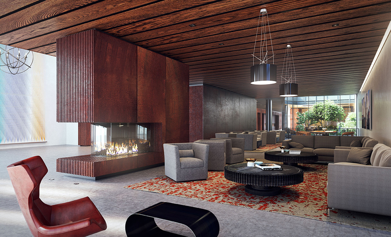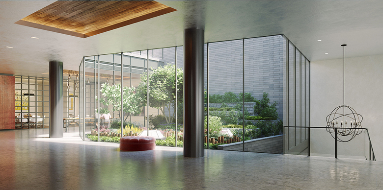 At grade, retail will line both facades. A through-block lobby is accessible from both streets, providing access to both buildings as well as a programmed public courtyard between the buildings.