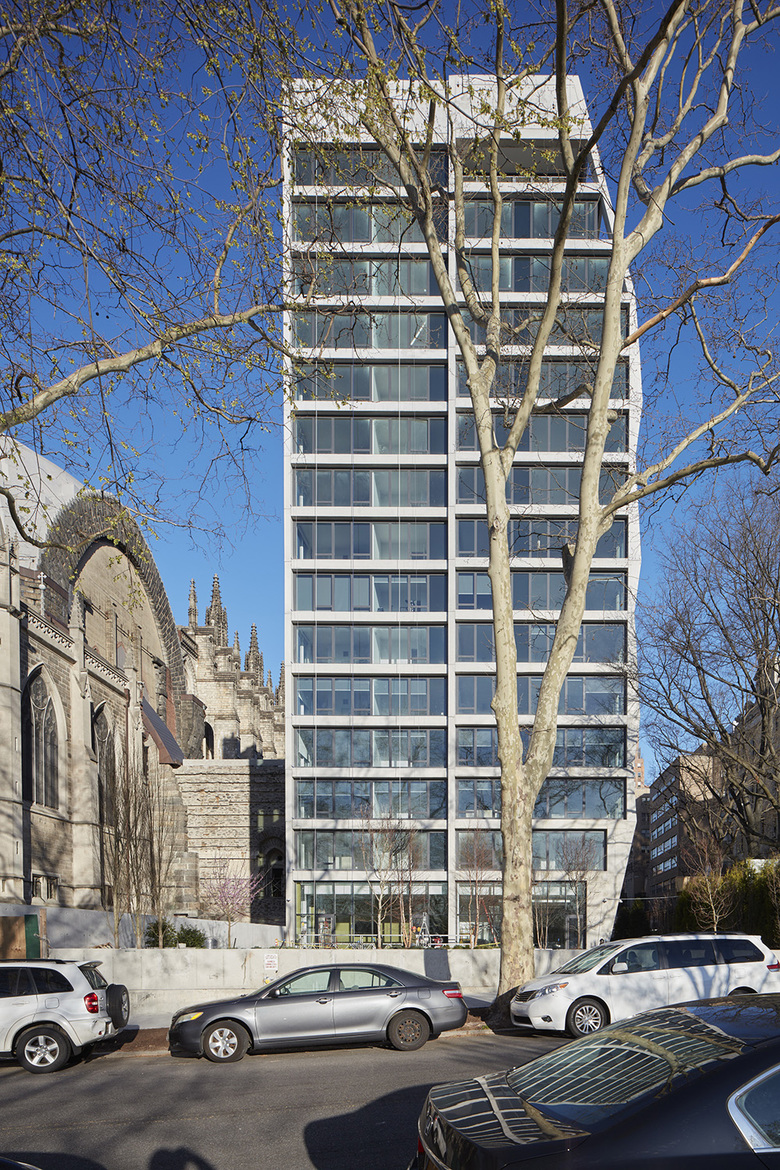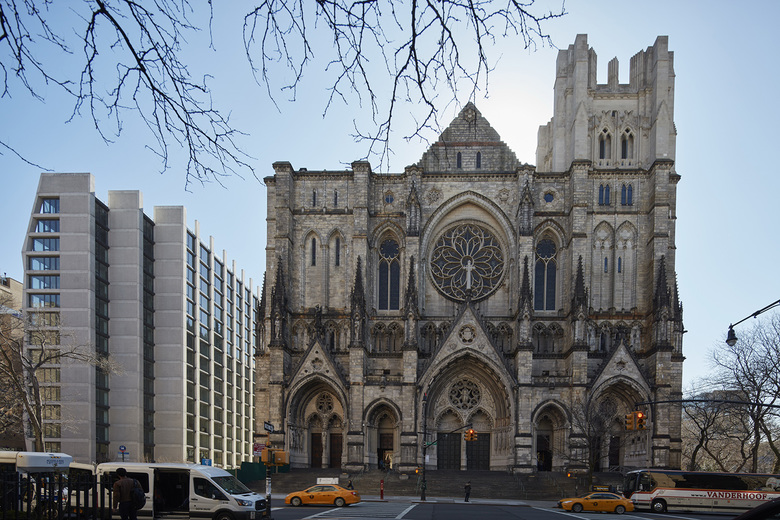 Enclave is a new residential development located on the property of Manhattan's Cathedral of St. John the Divine, the fourth largest Cathedral in the world. The new residences sit adjacent to the Cathedral, at the corner of West 113th Street and Amsterdam Avenue, on a site that formerly housed stone sheds where granite was cut for the construction of the church. Given the proximity of the new building to the Cathedral, the siting, massing, and design were critical.