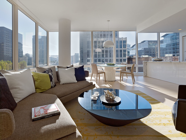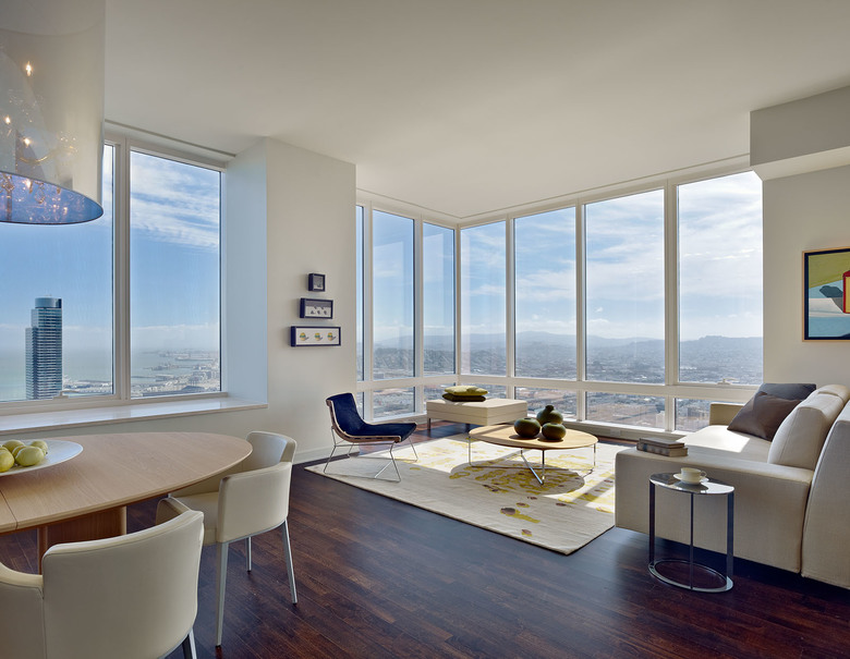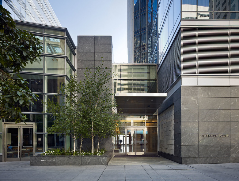 The tallest residential building in the United States west of Chicago, Millennium Tower consists of a 60-story tower, a nine-story mid-rise portion with apartments, an amenity level, retail space, and a public glass atrium. The central atrium links the two structures together. Designed as the primary public entry and gathering space for the project, the two-story glass atrium creates an indoor garden space along the street. In total the project includes 419 condominium units, 21,500 square feet of amenity space, 8,000 square feet of retail space, and a five-level underground parking garage for 340 cars.