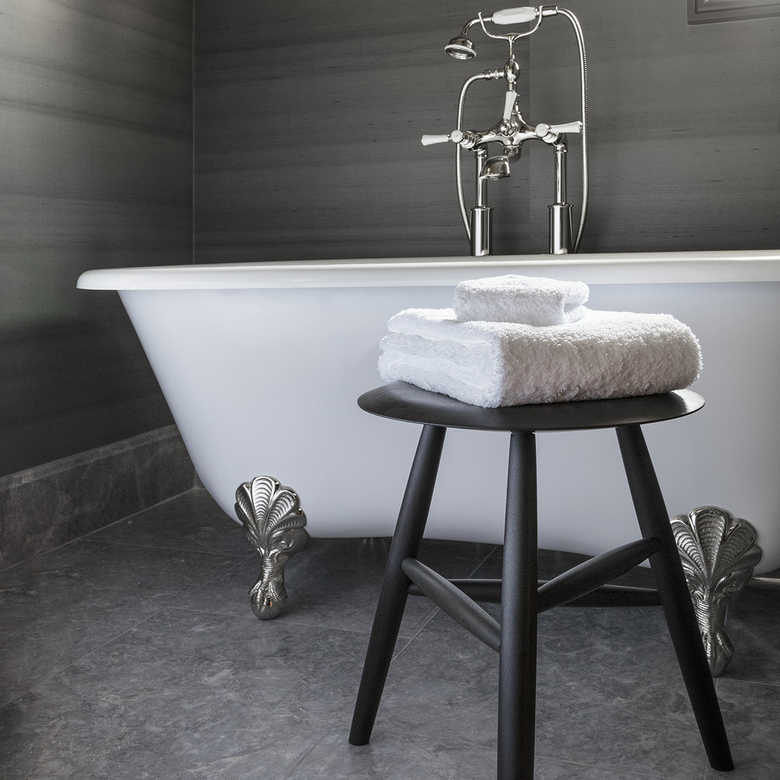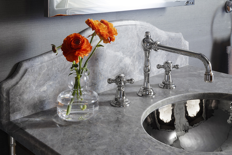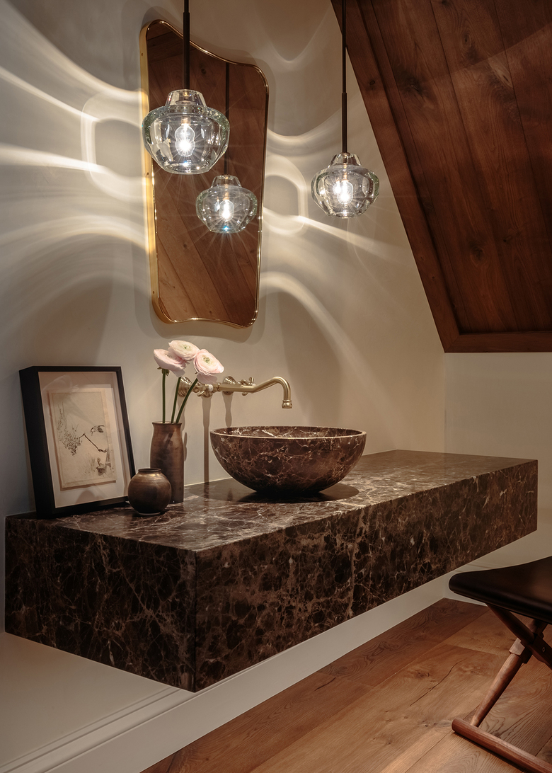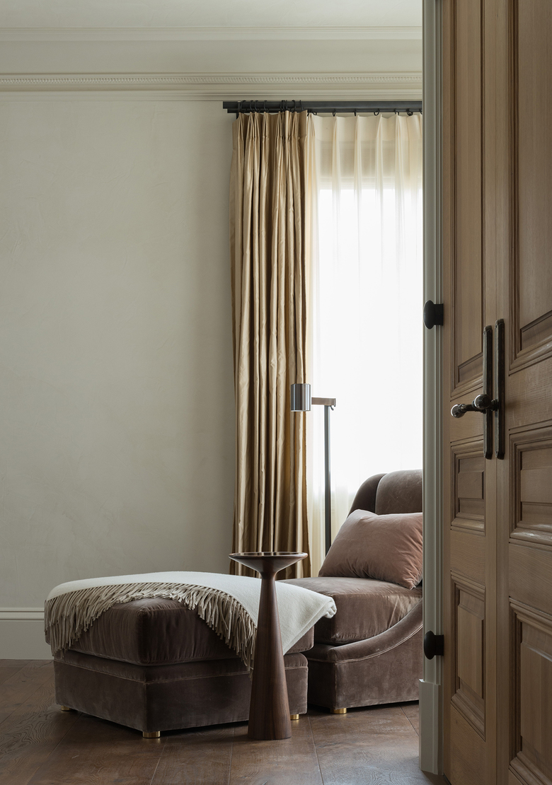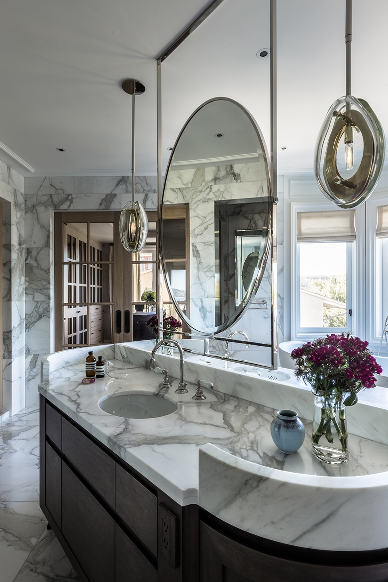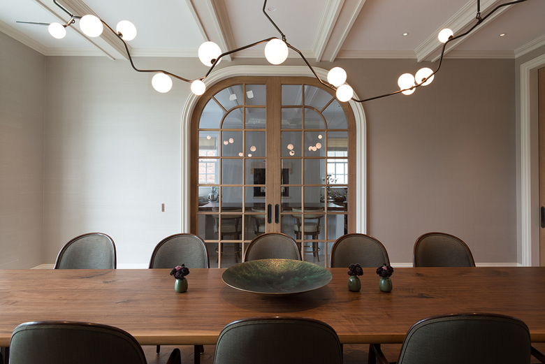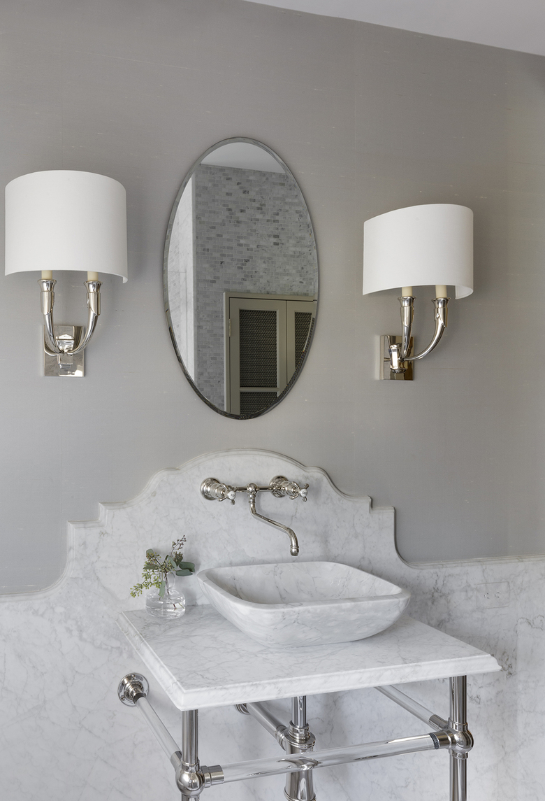 Christopher Peacock worked closely with Handel Interiors to create a breathtaking kitchen of painted cabinetry accented with walnut and brass. Fixtures and fittings from Waterworks and Dornbracht grace the six bathrooms and four powders.