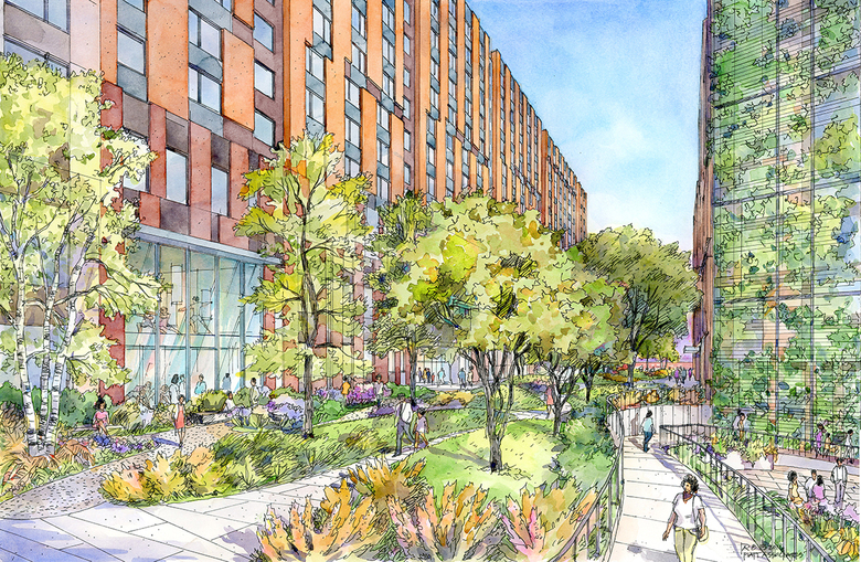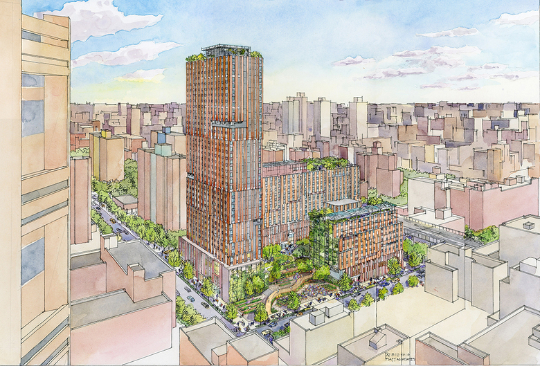 In taking a cue from an historical trail that once wound through the site, the project is arranged around a central meandering landscaped path, which weaves through the project from Park Avenue through the site to the western end of 111th Street and Madison Avenue.