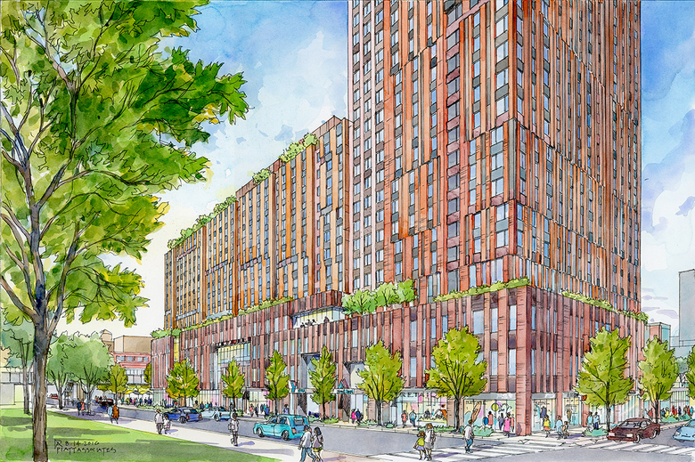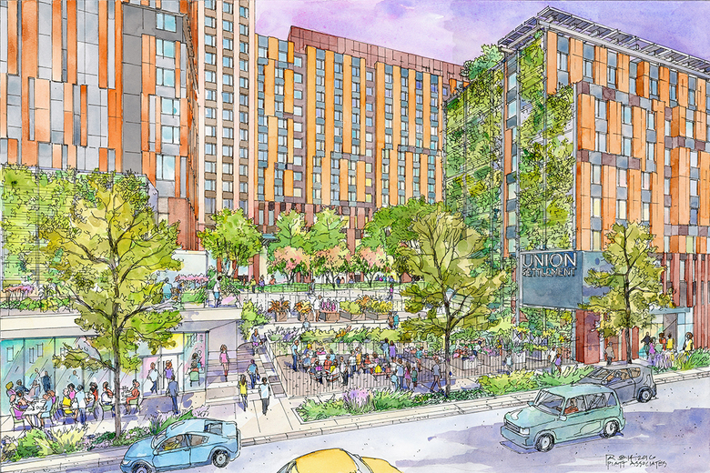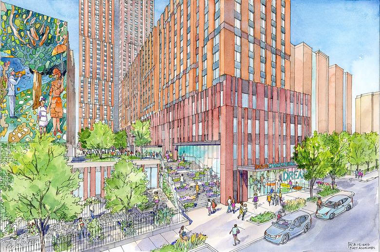 Sendero Verde is a mixed-use tower, with nearly 650 designated affordable residential units as well as extensive community space, retail space, and outdoor gardens. Community space will include a pool and athletic facilities. A charter school operated by DREAM will also be operating in the space, as well as supportive programming operated by Union Settlement. Retail will include a grocery store and a cafe/restaurant.