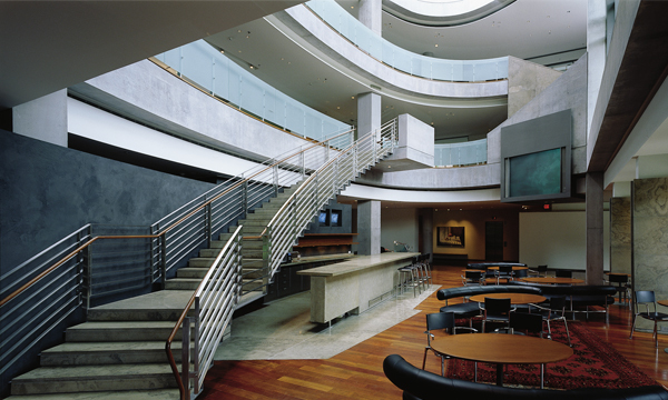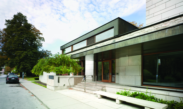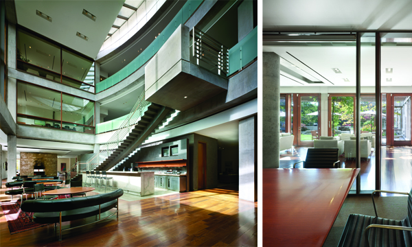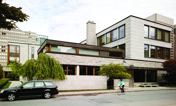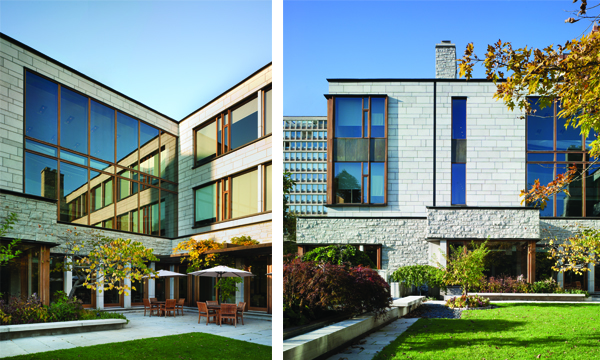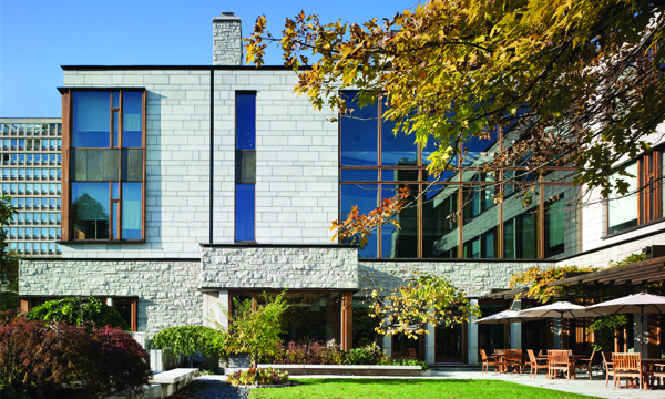 This three-storey Canadian corporate headquarters for McKinsey & Company, the leading international management consulting firm, whose business model is based on the premise that strategic design can be a tool to enhance the effectiveness of business environments. The building is designed to be a reflection of the McKinsey working methodology and to promote excellence by encouraging increased interaction, in the belief that creativity is grown through interactivity. This new office building is a compelling story in many ways, its well-considered urban design concepts with generous landscaped areas in the midst of a dense downtown Toronto block respect its urban site. It takes a ‘campus style’ as it integrates with bustling Victoria College at the University of Toronto. Transparency plays a key role in the facade, thoughtfully engaging with the neighbourhood. A carefully executed fast-track construction achieved through an innovative project delivery, and congenial interior spaces supportive of a creative work environment, reflect the innovative gestures of both McKinsey and HPA. To reflect McKinsey’s cutting edge business model, an architectural concept called “the hive” was developed for the ground floor central meeting space. The hive was created mostly for internal presentations and celebrations. It’s the place for the McKinsey teams to celebrate their victories, to come together for inspiration and to have fun; on a day to day basis it is a place to casually interact and share ideas. The hive is the centre of group activity, and there are quieter breakout areas at its perimeter. Throughout the building, there are fireplaces and informal sitting areas, warming and enlivening the more structured meeting rooms.