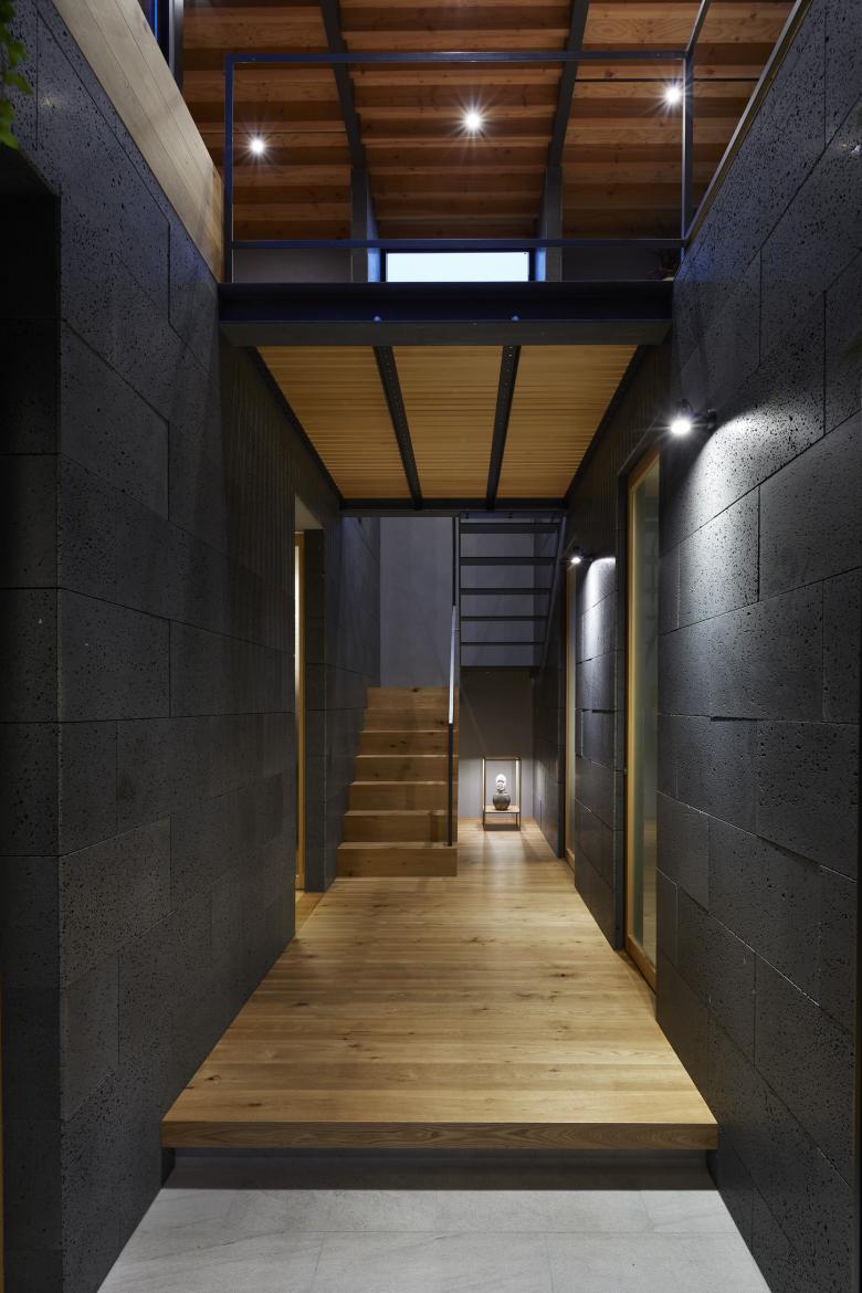 The second floor is the main family gathering space, and a semi-outdoor space filled with plants was defined as a "tsuginiwa," or garden that connects the environment and the architecture at the boundary between the interior and exterior. By setting the garden 4m above the ground surface, the garden overlaps horizontally with the lush greenery in the distance, creating a landscape with depth. The tangen garden is extended to the southeast to allow light to penetrate to the trees, creating a geese-path shape with different depths, and the bearing wall is placed in parallel to the garden to modulate the sunlight and the line of sight from the neighboring land. The exterior form of the building, which is intricate with the tangen garden, overlaps with the view to the southwest of Mt.