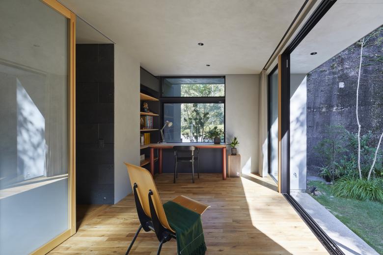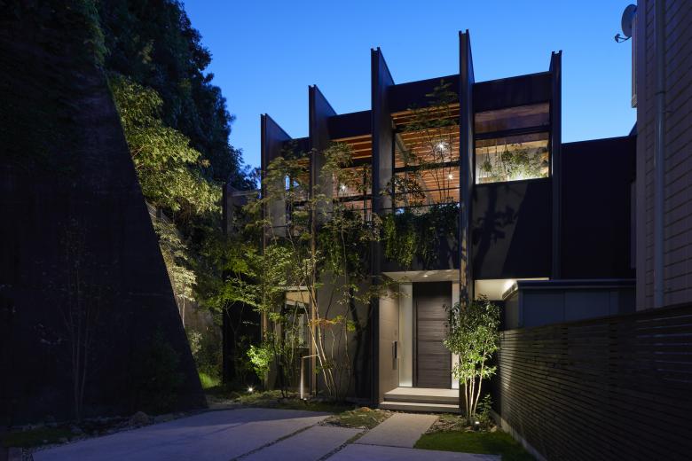 TSUCHIBA Connecting Architecture and Environment – The designer's own residence in Hiroshima City. When we visited the site for the first time, most of the site was covered by shadows caused by the tunnel and retaining wall that pass through Mt. Eba in front of the house, and once through the tunnel, there was a lot of car traffic, probably due to the factories of various companies. The site, with its irregular shape and negative conditions, was difficult to deal with in the surrounding area and seemed to be somewhat left out, but the expanse of lush greenery, which did not seem out of place in an urban area with a mix of houses and buildings, seemed more attractive than these conditions.