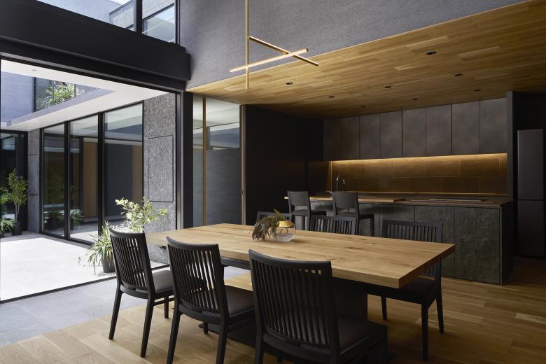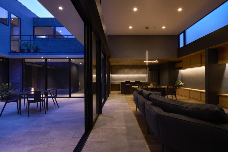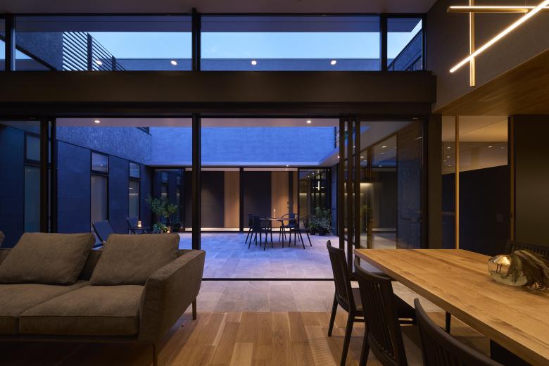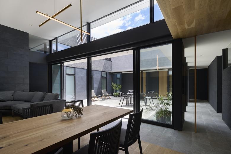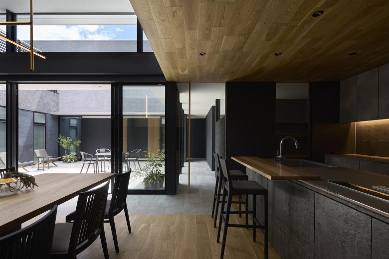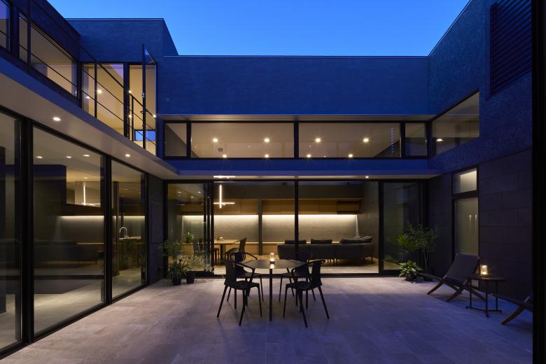 Because there are many rooms in the house, the view to the courtyard allows us to feel the presence and connection of the family. We believe that the courtyard's elements of centripetal force and continuity will enrich living in this residence.