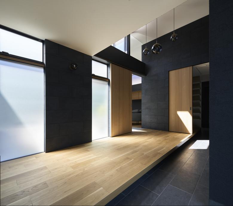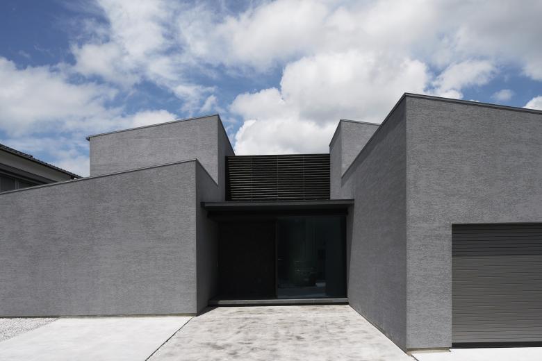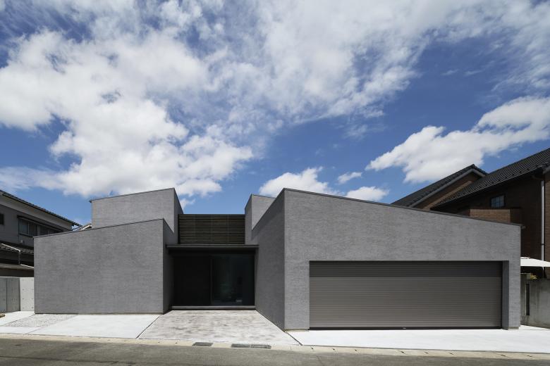 This project is located in a residential area in Kudamatsu City, Yamaguchi Prefecture. The site is large and the distance from the neighboring land is long, so it is surrounded by many residences, and lines of sight from many directions intersect with each other. The front road is a quiet road with little traffic, but the noise from the neighboring main road is constantly echoing. The theme of the project was to create a protected living environment in conjunction with this sound environment.