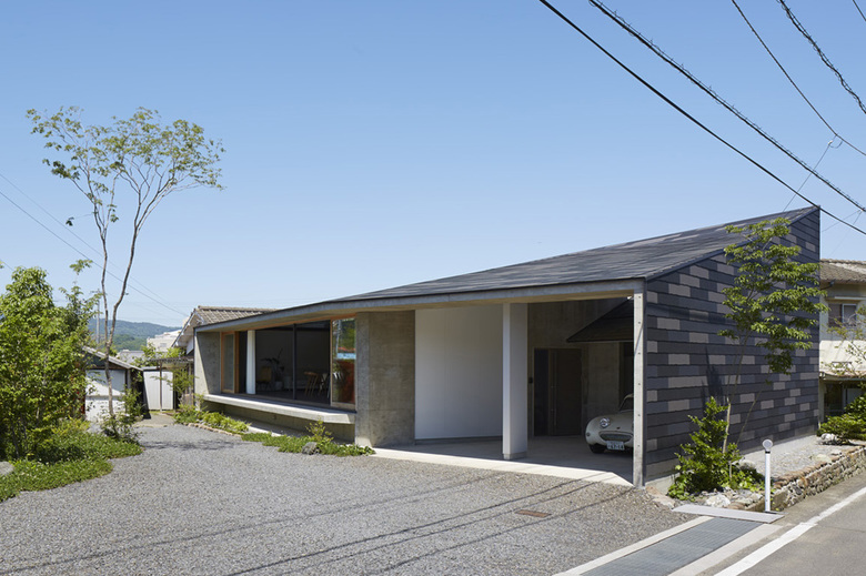The site is lined with neighboring houses except for the road on the east side, but each site is large enough to maintain a moderate distance from the other. The client wanted to keep the south garden as much as possible, and to live openly with a view of this garden.