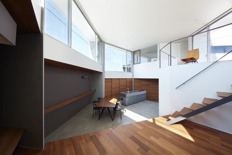 By setting the boundary between the house and the external environment in the interior space of the atrium, rather than in the external space of the garden or under the eaves, we believe we have created a moderate and soft boundary between the city and the landscape.