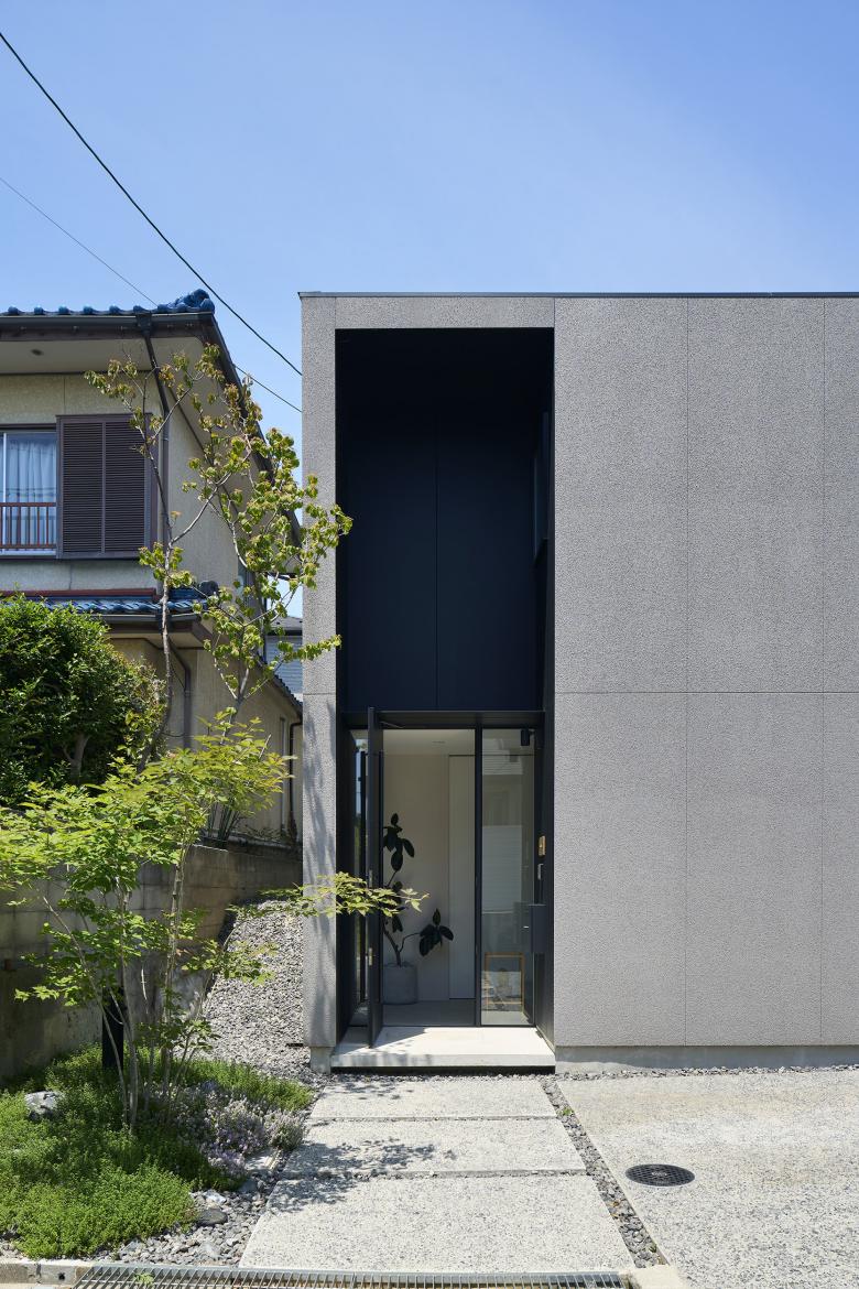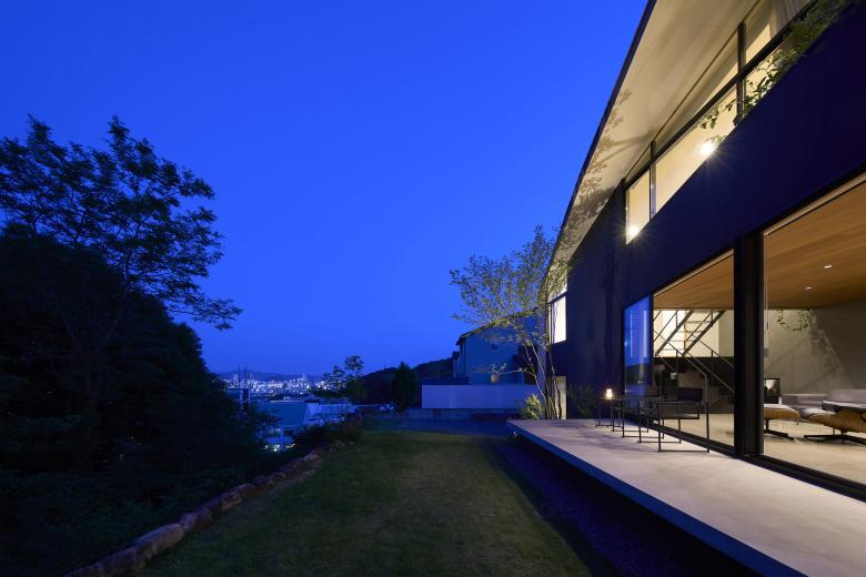 This house is located in a residential area that was built along the slope of a hillside in the middle of a mountain forest. Hiroshima City has many such residential areas, and the streetscape is gradually being updated as the population ages. The site has an unobstructed view from the east to the south in the foreground. To the east, there is also an old-growth forest left over from land development, and the distance between the site and the neighboring land was kept at a reasonable level.