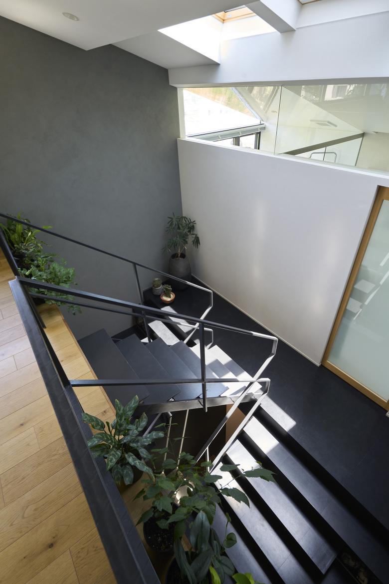 The site originally had a 1.5-meter difference in elevation in the center, so four floors were shifted by half a story to create a skip-floor cross-section, creating a gradual connection between rooms. In addition, skylights were placed on the stairs connecting the floors to ensure stable light and ventilation through the upper and lower floors.