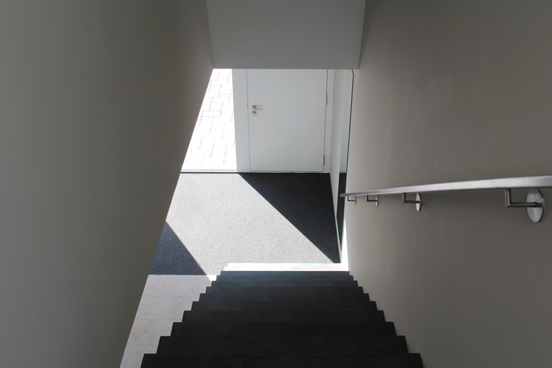 Von innen nimmt man nicht wahr, dass die Talseite verbaut ist. Das liegt am vorstehenden Küchentrakt, welcher das vorgelagerte Haus vollständig abdeckt. Mit diesem Vorbau entsteht ein intimer Hof, welcher die Sicht in die andere Richtung leitet wo sie sehr schön ist. Zudem lässt sich das 6-Personenhaus mit wenigen Eingriffen in zwei komplett getrennte Wohnungen unterteilen: Eine mit Aussichtsterrasse im OG, die andere mit dem Gartenatrium im EG. Somit kann die Bauherrschaft noch sehr lange ihren Garten geniessen.