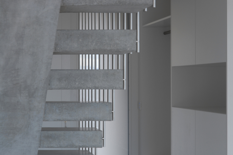Das Projekt macht sich die steile Hanglage zu Nutzen und arbeitet in den meisten Geschossen auf unterschiedlichen Ebenen. Diese zeigen sich als terrassierte Aussenräume wie auch in den gestaffelten und verzahnten Wohnkuben.