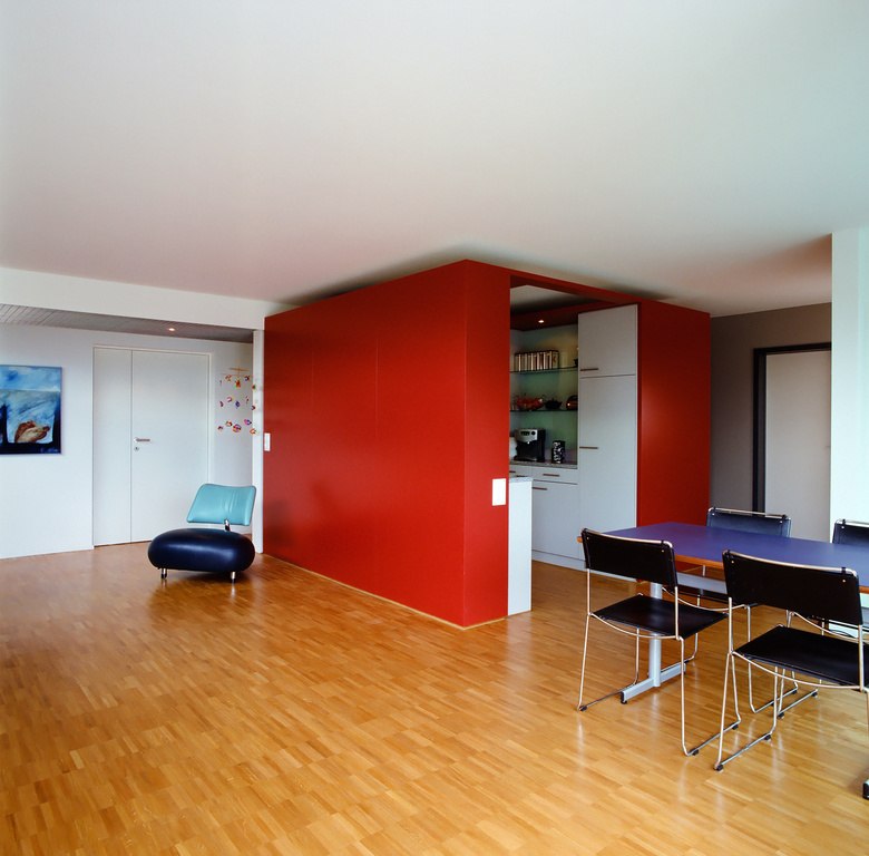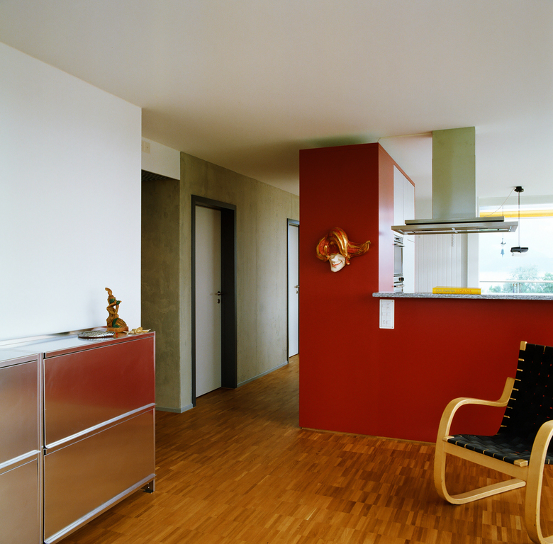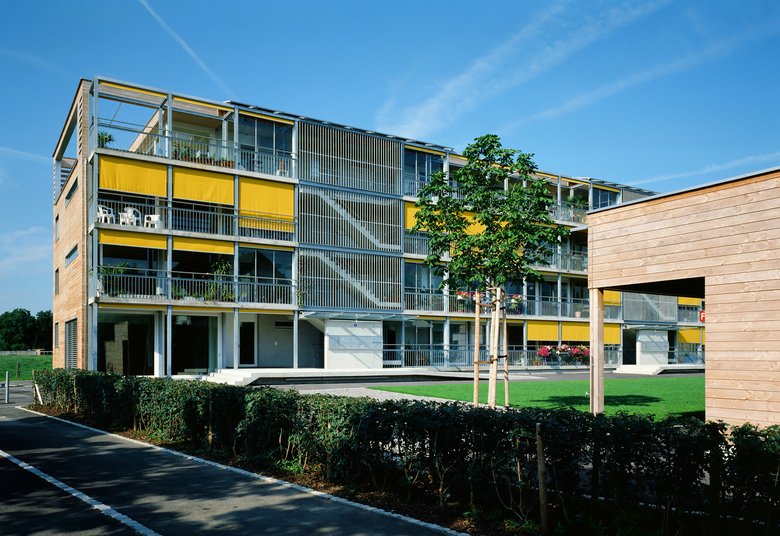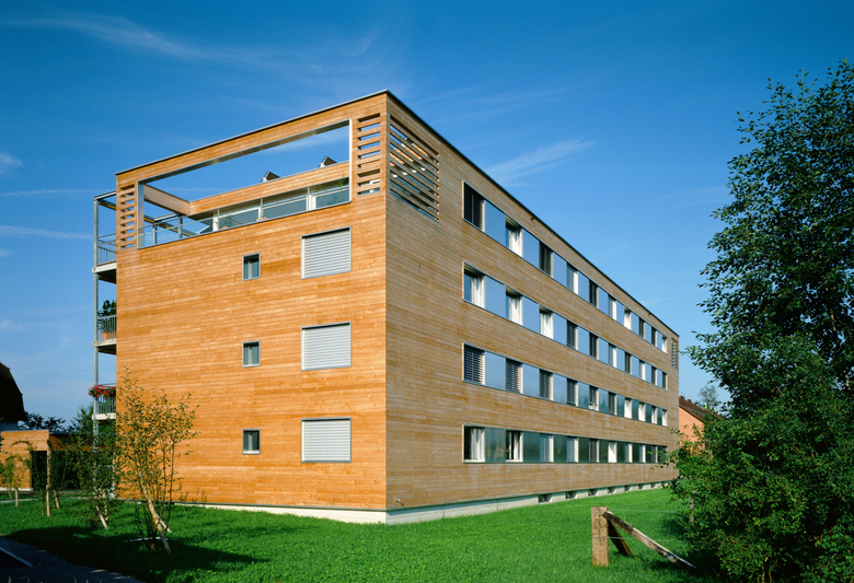 In der Lorzenebene in Zug steht ein ruhiger, ausdruckstarker Holzquader. Es ist das erste, aus Holz erstellte 4-geschossige Mehrfamilienhaus im Kanton Zug. Durch Minergiestandard, Sonnenkollektoren und Ausrichtung gegen Süden wird Energie und Wohnqualität gewonnen. Die Wohnungen profitieren allesamt von einer Ausrichtung gegen Süden, See und Berg. Die Wohnungen lassen sich zudem von 3½ auf 4½ oder 5½ Zimmereinheiten umwandeln. Begegnungen finden über die südseitige Erschliessung statt, welche direkt in den vorgelagerten Spielhof münden.