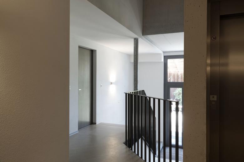 Ziel des Entwurfes war es, auf dem alten Fussabdruck einer ehemaligen Zimmerei ein Mehrfamilienhaus mit 6 Kleinwohnungen zu organisieren. Dafür wurde die alte Ebene des Bodens belassen und beherbergt nun die Einstellhalle. Dadurch sind die Wohnung hochparterre gelegen und erfahren so die nötige Privatsphäre. Die Wohnungen liegen um einen zentralen Erschliessungskern. Dieser wurde so positioniert, dass auch das bestehende Wohnhaus durch einen rückwärtigen Eingang eingebunden werden konnte. Die Fassade, mit einer vertikalen Deckleistenschalung versehen nimmt Bezug auf das, was schon immer an diesem Ort zu finden war. Ein Gebäude in Holz gekleidet.