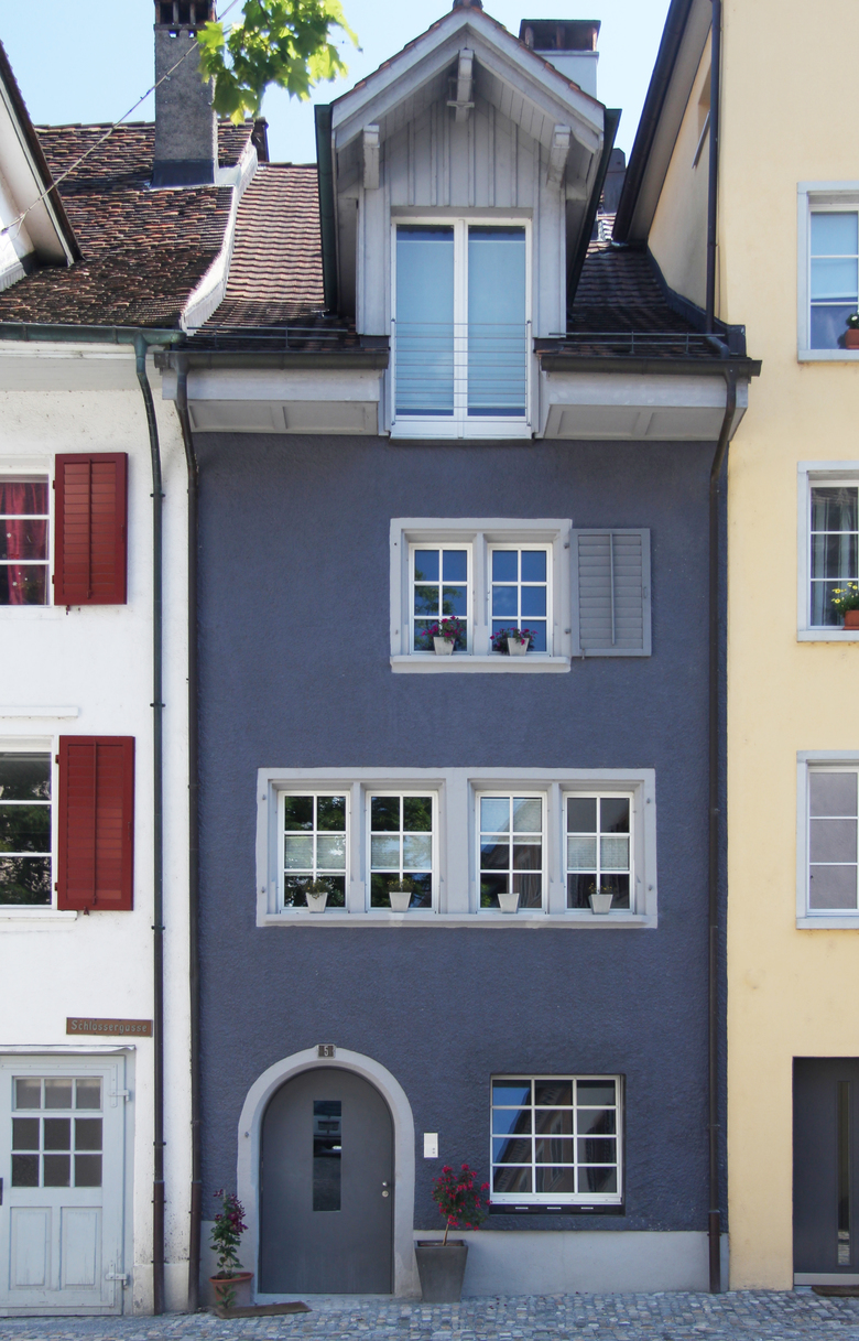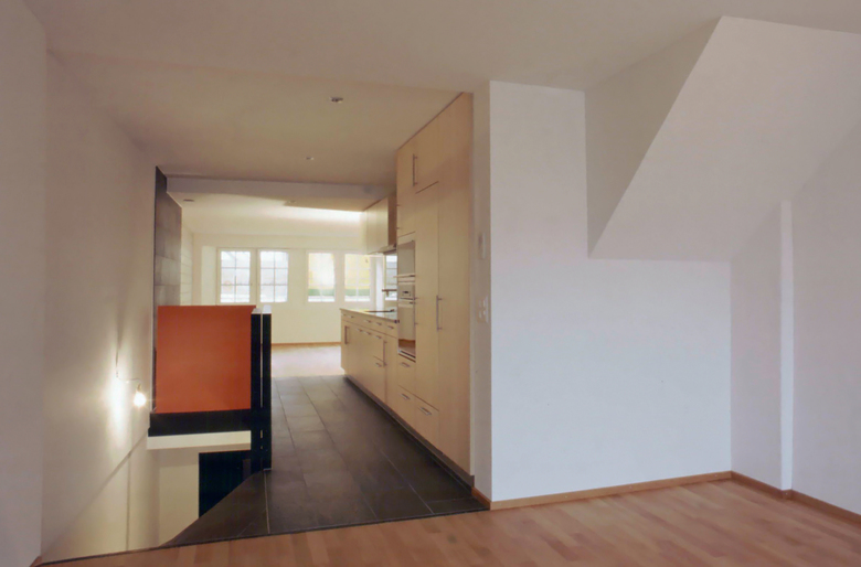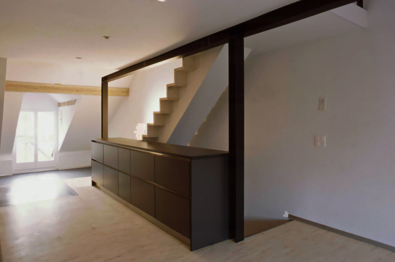 Das Altstadthaus sollte in zwei übereinanderliegende Wohnungen unterteilt werden. Durch die Hausbreite von nur vier Metern mussten Einbauten wie Treppen, Küchen und Galerien in der Hausmitte platziert werden. Das Freilegen und angemessen Inszenieren dieser Elemente vermag sie auch visuell in den Mittelpunkt zu rücken. Durch eine Bohrung in der Altstadtgasse konnte die erste Erdsondenheizung der Altstadt Bremgarten realisiert werden.