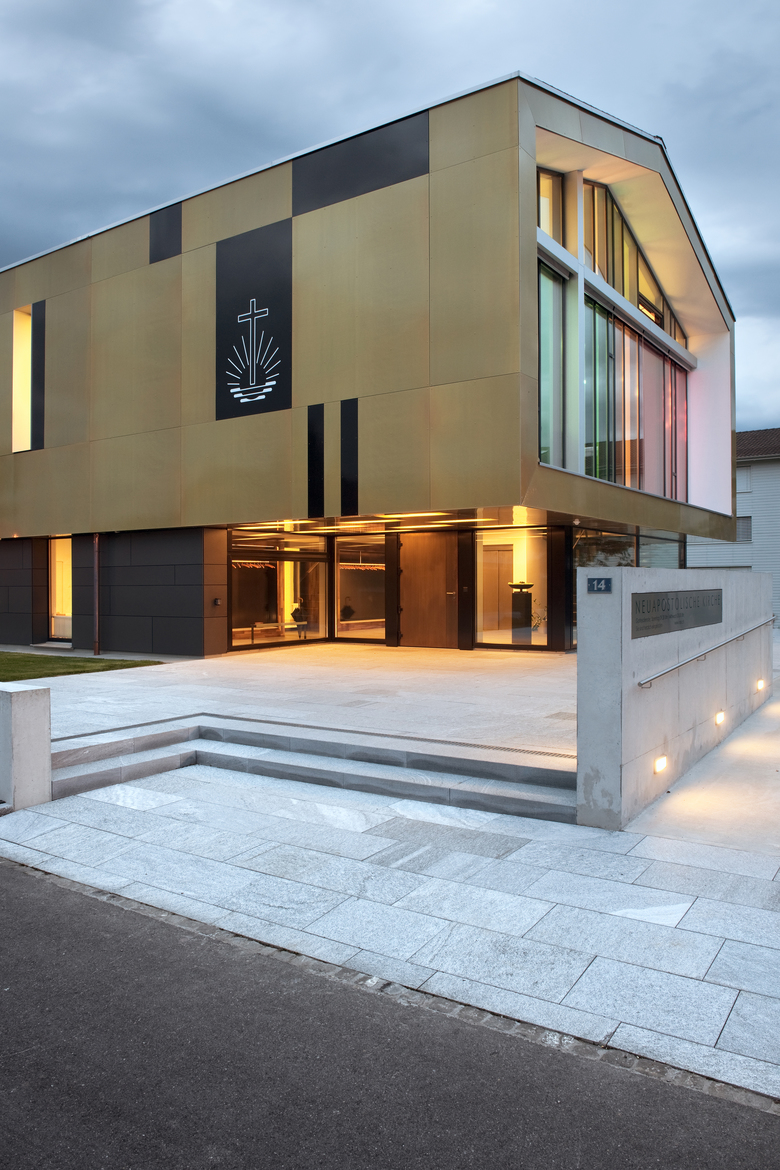 Die aus dem Jahre 1967 stammende neuapostolische Kirche sollte in betrieblicher und energetischer Hinsicht den Ansprüchen der heutigen Zeit angepasst werden. Gleichzeitig sollte die Gelegenheit wahrgenommen werden, dem nüchternen Gebäude eine sakrale Atmosphäre zu verleihen. Unser Konzept beruht darauf, im Kirchensaal sparsamer mit dem Licht umzugehen um Besinnlichkeit zu erreichen. In Gegensatz dazu haben wir den neuen Anbau des Eingangbereiches sehr transparent und einladend gestaltet. Alle neuen funktionellen Ansprüche sind im Anbau konzentriert, sodass dort mit Neubaukosten anstelle von Sanierungskosten gerechnet werden kann. Durch die Hausverlängerung wirkt der Gebäudekörper schlichter und eleganter.