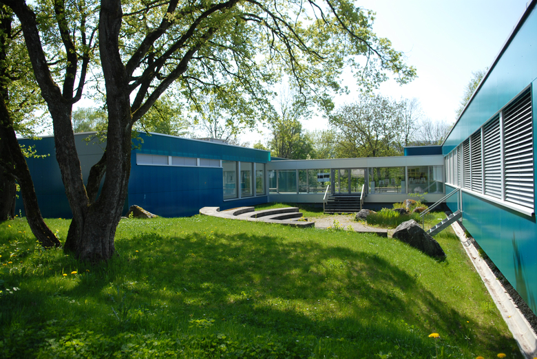 Einzelne, beidseitig belichtete Schulräume welche perlenkettenartig entlang der Bünz aufgereiht wurden, bieten aussergewöhnliche Qualitäten bezüglich Licht- und Raumerlebnissen. Die idyllische Lage wird vor allem während der wärmeren Jahreszeiten durch die den einzelnen Pavillons vorgelagerten naturnahen Aussenräume erlebbar. Aufgrund der Einmaligkeit der zweigeschossigen Anlage besteht der Wunsch, den aus den 60-er Jahren stammende Schulbau bautechnisch und energetisch zu sanieren. Trotz dieser nötigen Erneuerungen sollen die charakteristischen Details der Pavillonbauten beibehalten werden.