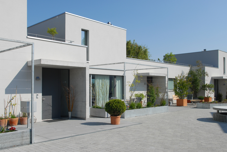 Jede Wohneinheit verfügt über eine grosse (Dach-)Terrasse oder direkten Zugang zum privaten Garten. Es wird ein «Quartier» geschaffen, das einen öffentlichen Begegnungsraum, halb-private und private Aussenräume vorsieht.