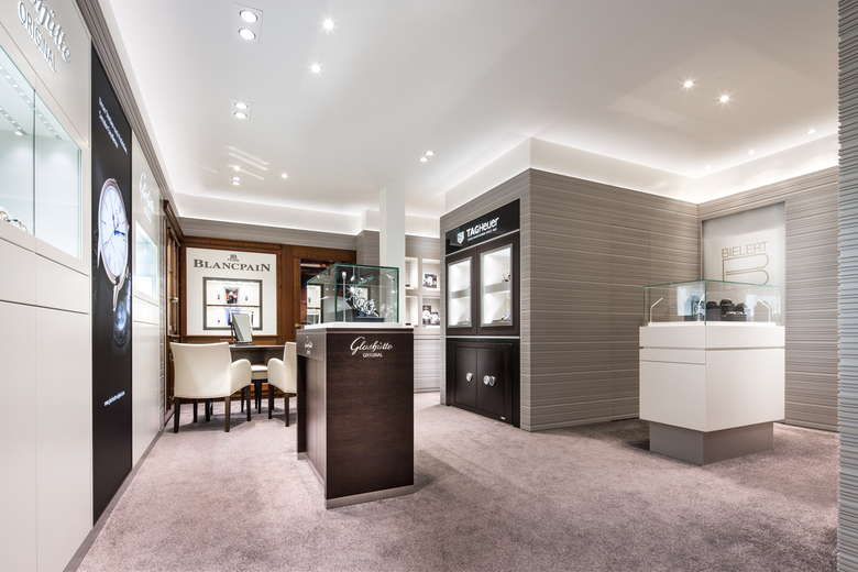Die hochwertigen Produkte werden bei Bielert in ansprechenden, hellen eigenen Vitrinen als auch im Shop in Shop – Konzept präsentiert. Jede Uhren- und Schmuckmarke wird individuell und ansprechend inszeniert.