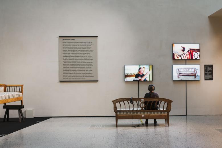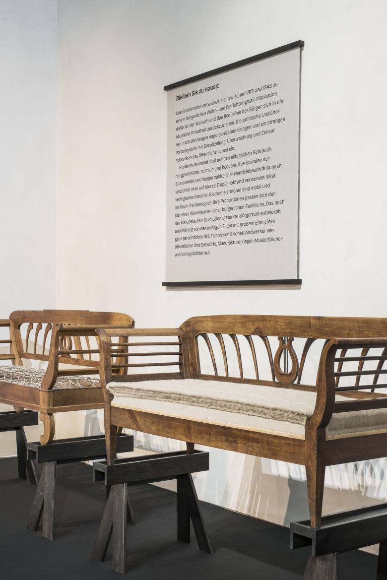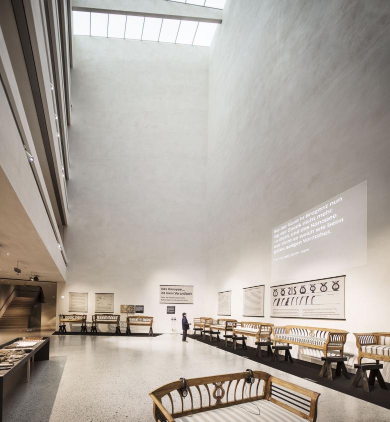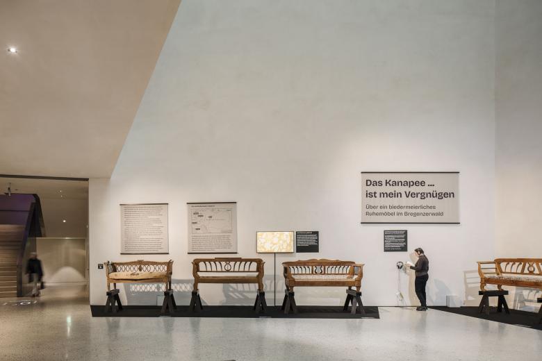 The idea for the exhibition came up many years ago when Johannes Mohr told us about his many restored canapés from the Bregenzerwald, all of which were dated between 1820 and 1840. The vorarlberg museum was enthusiastic about the subject of Biedermeier sofas and put on what everyone said was a successful exhibition in the atrium, a freely accessible area on the ground floor of the museum.