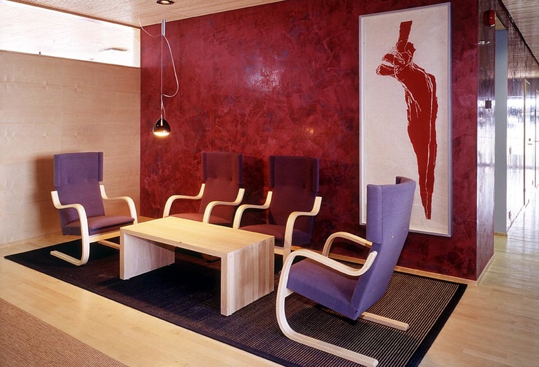 A 5,500-kilo log sauna built by the Fiskars Village cabinet makers was lifted to the 15th floor by a huge crane. The novel joints of the sauna, based on equal torsion, and various furnishings for the special spaces of Sitra were created in collaboration with the cabinet makers.