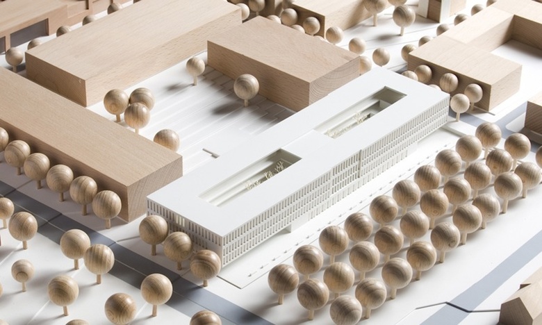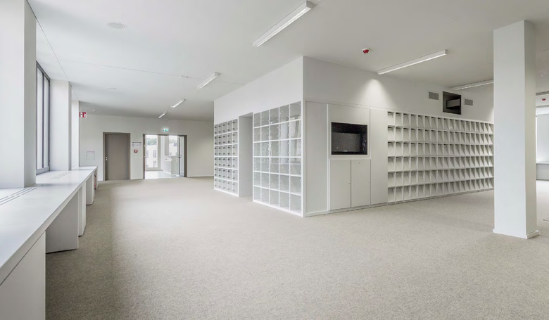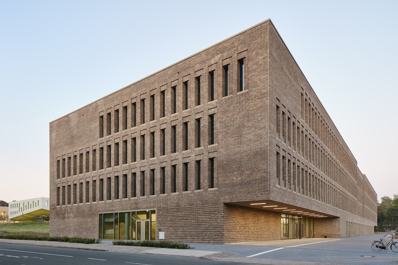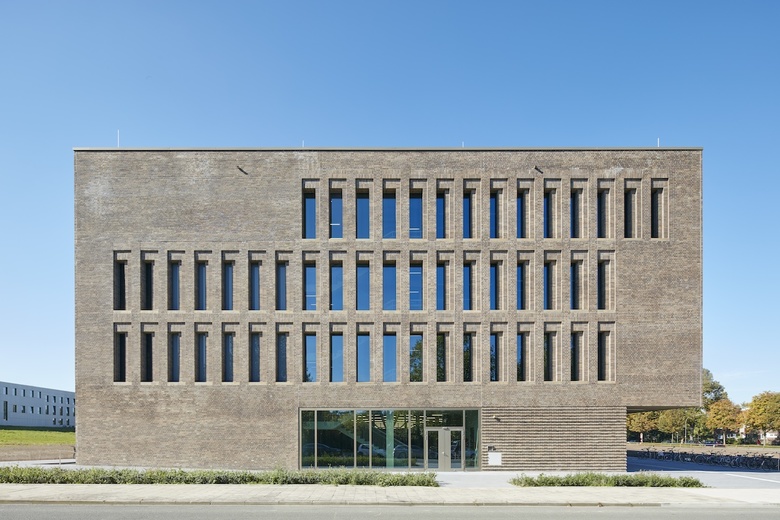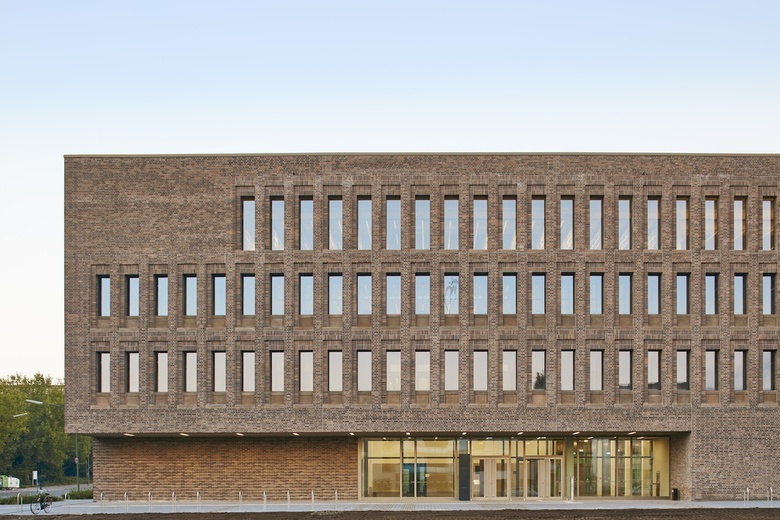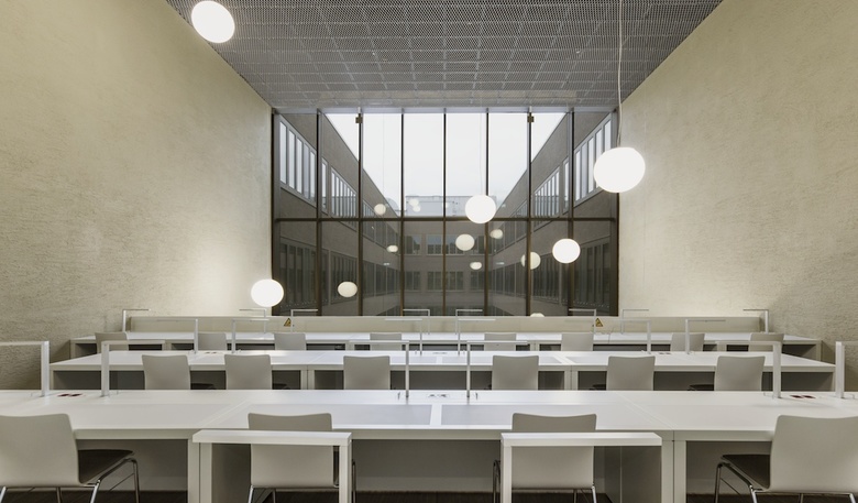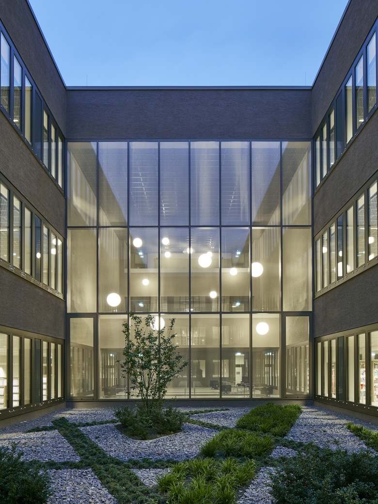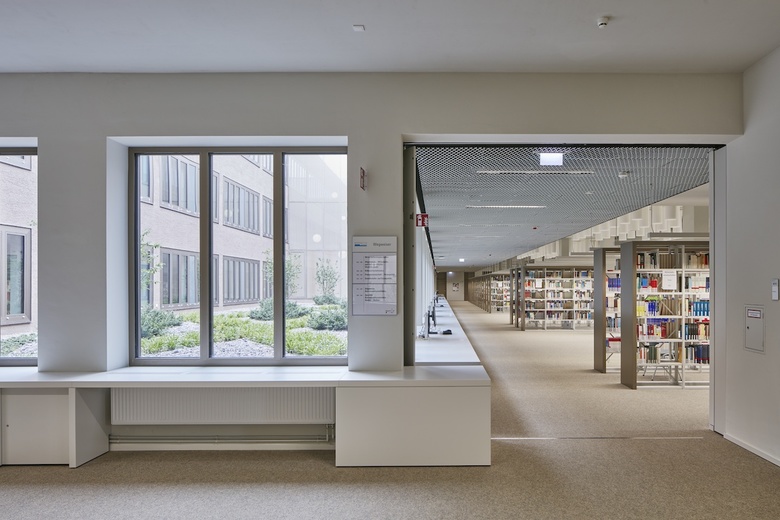 - Planung und Realisierung nach Wettbewerb 1. Preis. Der kompakte Baukörper der Bibliothek ist ein plastisch ausformulierter Monolith, welcher die raumbildende Orthogonalität der vorgefundenen Strukturen fortsetzt und damit einem Masterplan zur räumlichen Campuserweiterung auf dem ehemaligen Kasernengelände folgt.