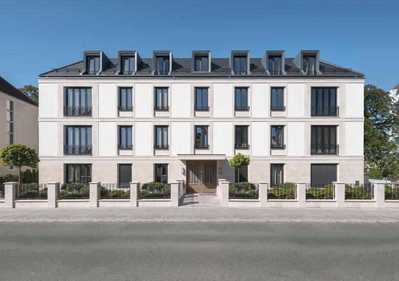 Im Frankfurter Malerviertel entstand in nur 1.5 Jahren Bauzeit Ende Oktober 2018 eine anspruchsvolle Stadtvilla. Hollin + Radoske hat alle Leistungsphasen von der Grundlagenermittlung über Vorentwurf und Entwurf, Ausführungsplanung und die Bauleitung erbracht. Auch die Innenarchitektur wurde komplett von Hollin + Radoske entworfen und umgesetzt. Eine klassische, moderne Fassade mit Naturstein und Putz, Metallarbeiten in Schwarz, kontrastieren mit aufwendigen, massiven Fensterumrahmungen aus Muschelkalk mit integriertem Sonnenschutz und dem anthrazitfarbenen Dach mit Gaupen in Zinkblech.