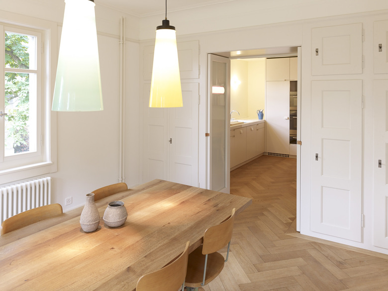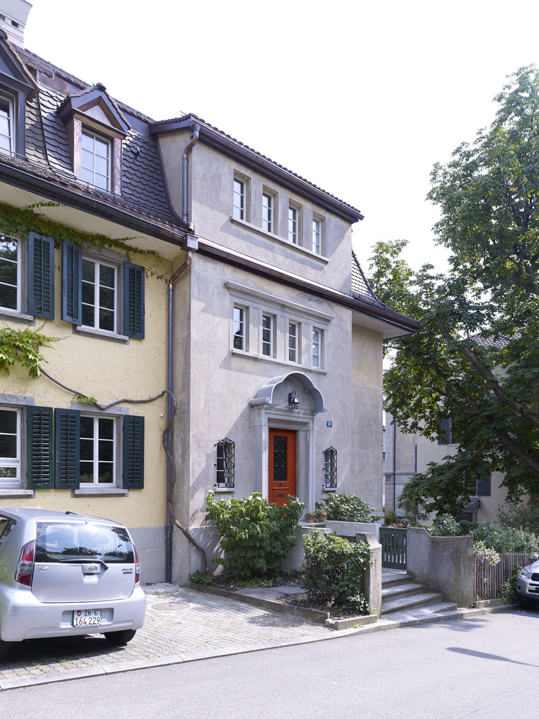 Das Haus an der Eleonorenstrasse gehört zu einer Häusergruppe, die nach der Jahrhundertwende als Wohnsitz für Professoren der nahegelegenen Universität erstellt wurde. Erhard Gull, Sohn von Gustav Gull und Architekt des Museums Bellerive arrangierte die Häuser nach Vorbild der englischen Gartenstadt in einem locker und durchgrüntem Ensemble aus zweigeschossigen Doppel- und Dreifachhäusern. Das Haus wird über das Treppenhaus betreten, das den Blick bis unter das Dach freigibt und von welchem sämtliche Räume erschlossen sind. In der ursprünglichen Disposition sind auf beiden Wohngeschossen den zwei gartenseitigen Haupträumen zwei separate kleinere Nebenräume angegliedert. Das Umbauprojekt verbindet die Räume im Erdgeschoss zu einer offenen Abfolge von Wohnküche, Salon und Wohnzimmer, wobei die ursprüngliche Typologie erhalten bleibt und jeder Raum seine eigene Stimmung entfalten kann.