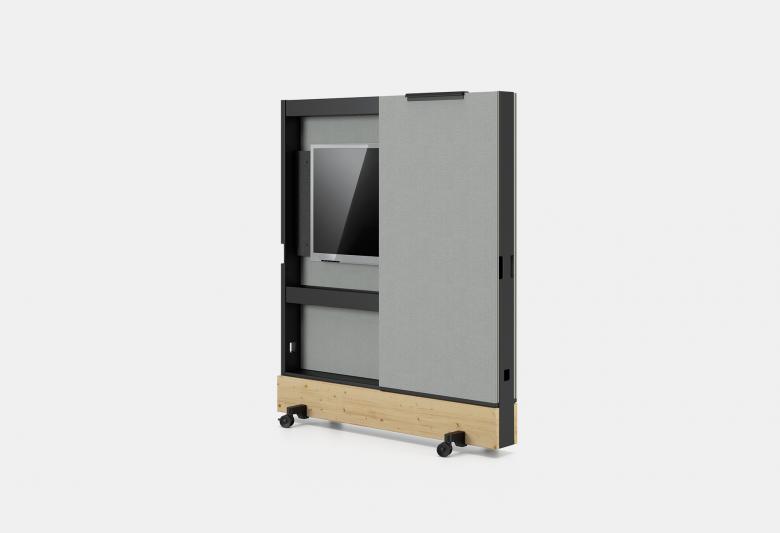 Ein mit Massivholz verkleideter Sockel verleiht der Dancing Wall das perfekte Gewicht, so dass sie trotz der kurzen Ausleger mit Rädern einen guten Stand hat und sich immer noch leicht verschieben lässt.