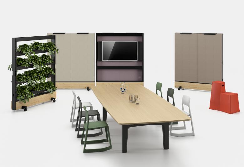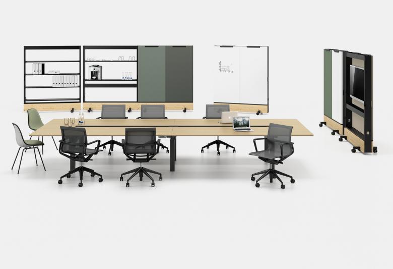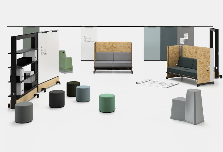 Kombiniert man verschiedene Dancing Walls miteinander, lassen sich zahlreiche Raum- und Arbeits-Situationen kreieren. In Sekundenschnelle können die Mitarbeitenden damit auf Veränderungen von Teamgrösse, Firmenstruktur oder Raumfunktion reagieren – ohne Umbauten oder Monteur, und ohne zusätzliche Kosten und Emissionen.