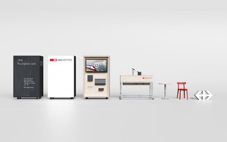 Stephan Hürlemanns Ziel war es, einen flexiblen und steckfertigen Baukasten zu entwerfen. Entstanden sind sieben Elemente, die von den SBB-Mitarbeitenden dem jeweiligen Kontext angepasst und in beliebiger Stückzahl kombiniert werden können.